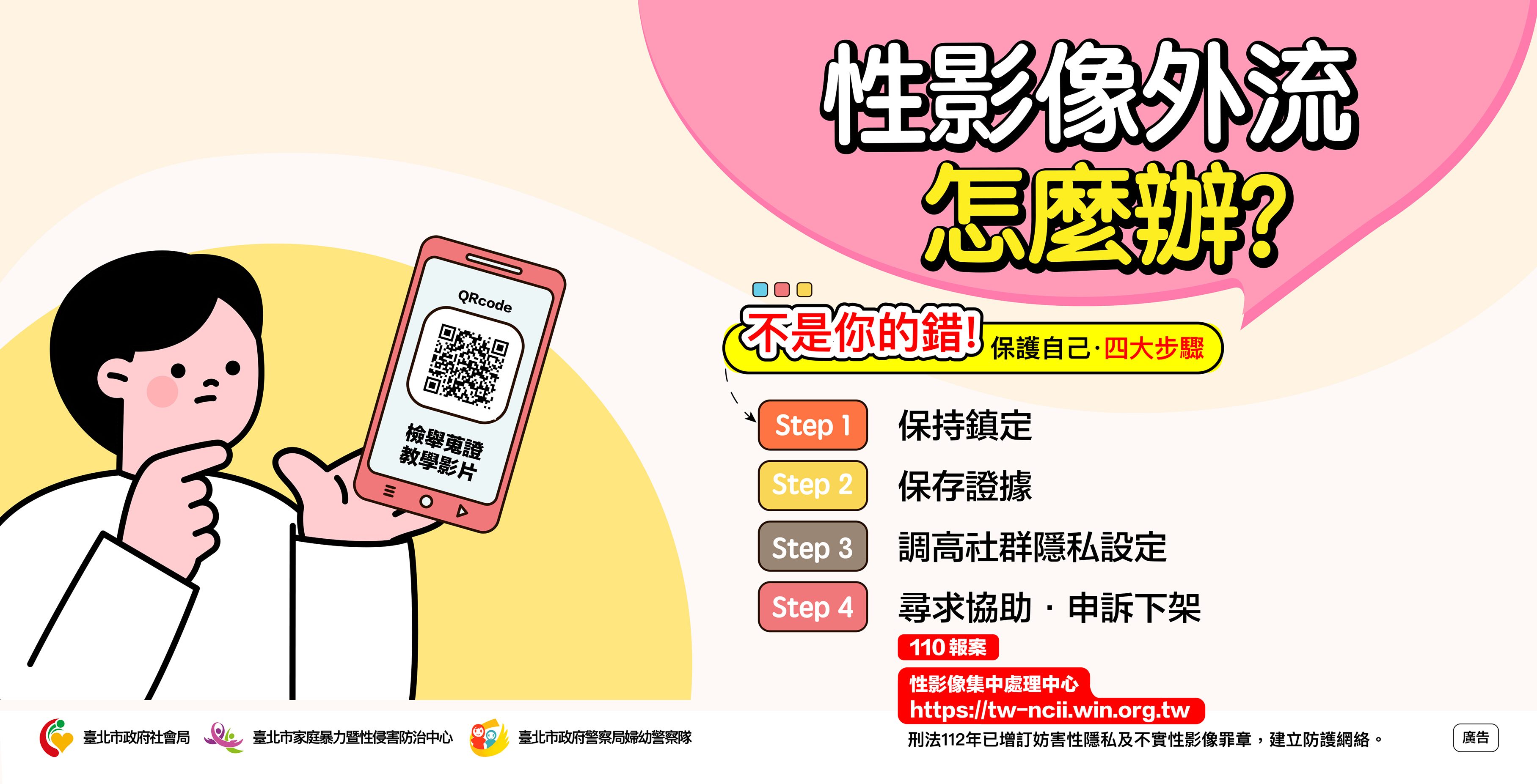 性影像外流不是你的錯,四大步驟:保持鎮定、保存證據、調高社群隱私設定、求助申訴下架。