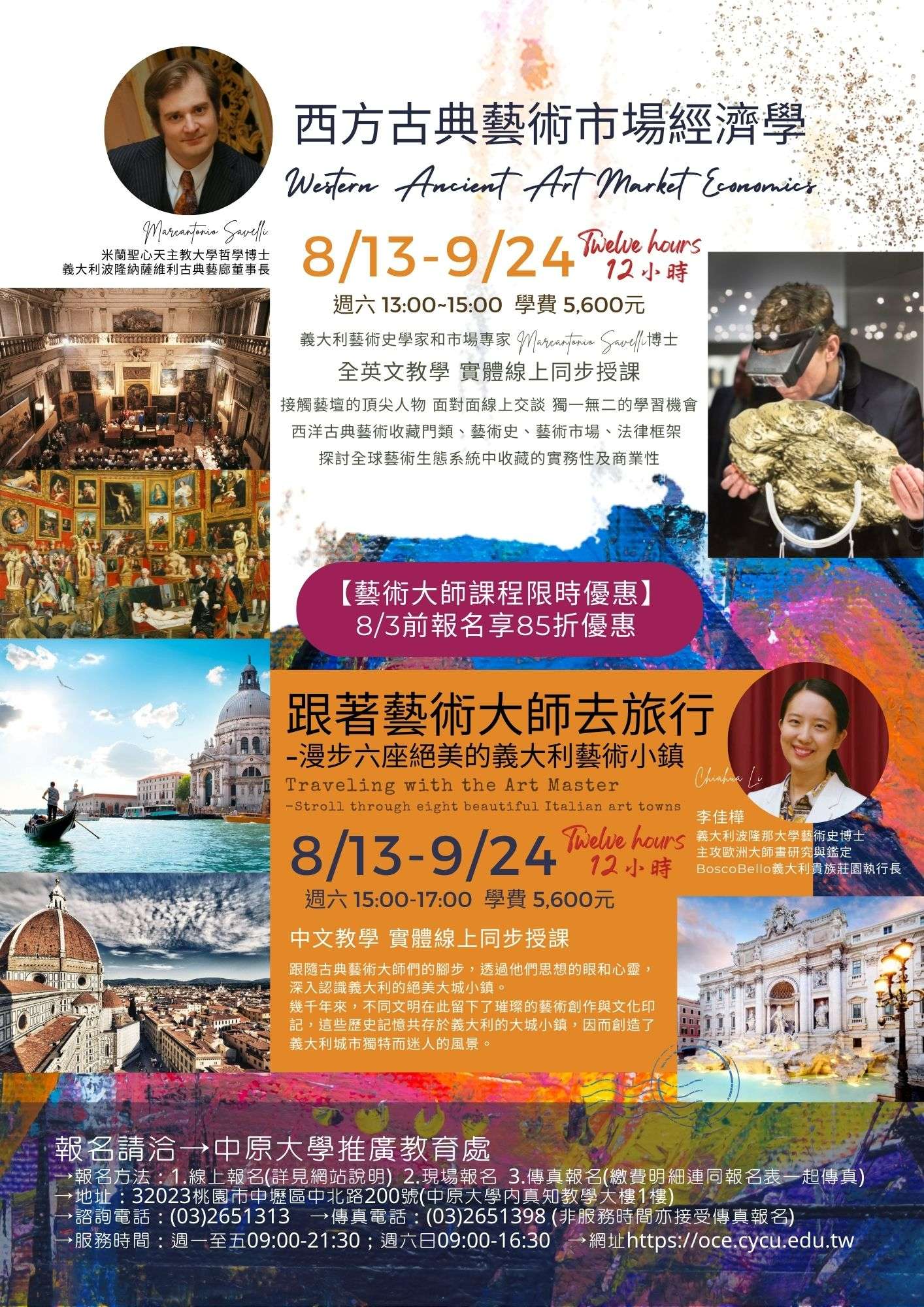 商業性問題;「跟著藝術大師去旅行-漫步六座絕美的義大利藝術小鎮」課程將帶領學員跟隨古典藝術大師們的腳步,透過他們的眼,重新認識義大利的絕美大城小鎮,讓