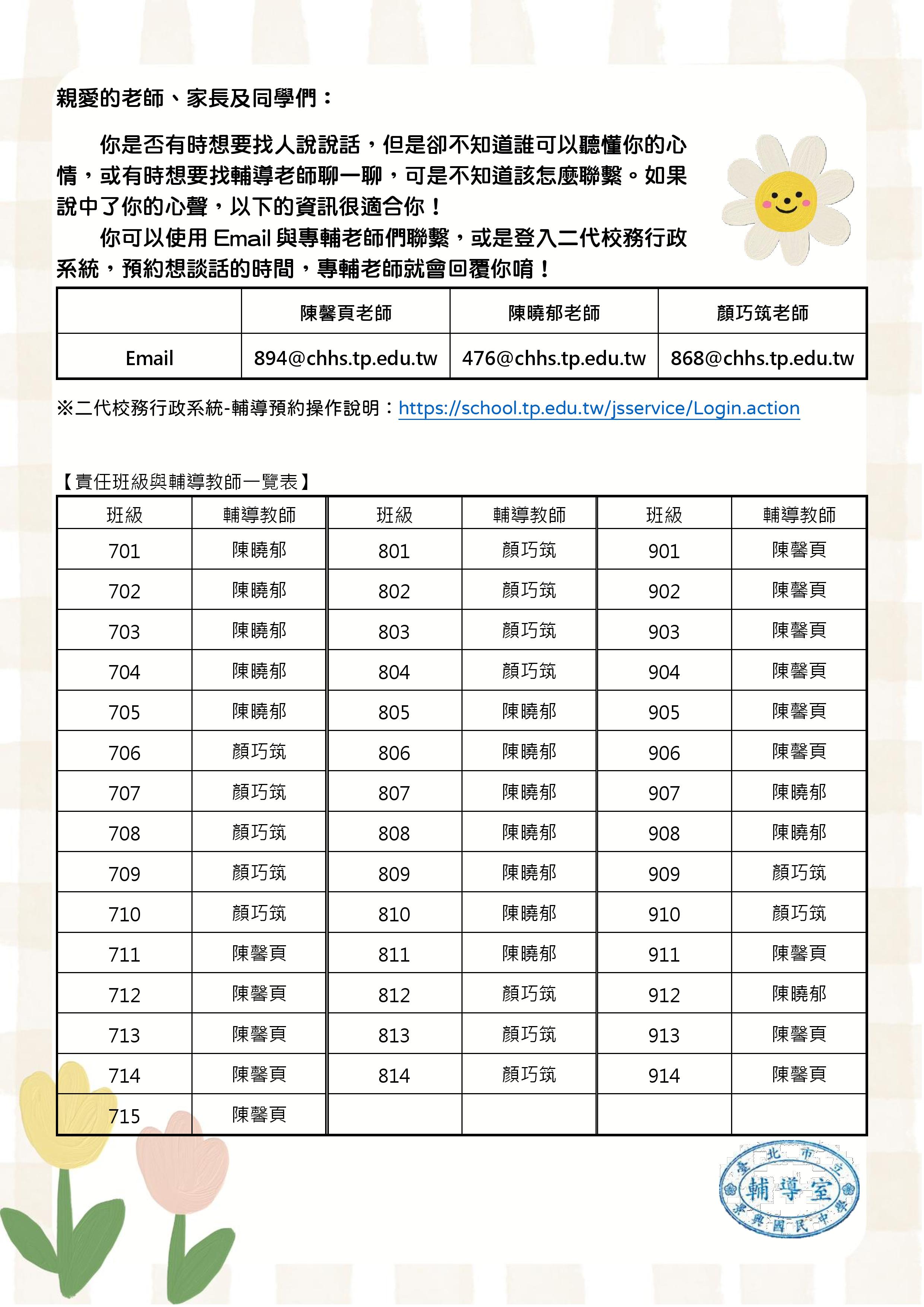 ※二代校務行政系統-輔導預約操作說明:https://school.tp.edu.tw/jsservice/Login.action