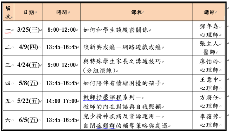 109年度校園第一線專業人員兒少心理健康知能培訓