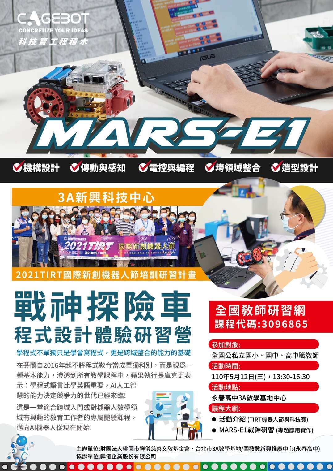 二、教師培訓課程日期為5月12日(三)下午1點30分至4點30分,地點為臺北市3A教學基地新興科技中心(永春高中),詳細課程計畫與海報請見附件,敬請貴校鼓勵教師