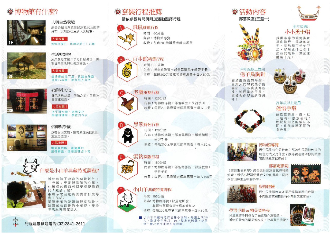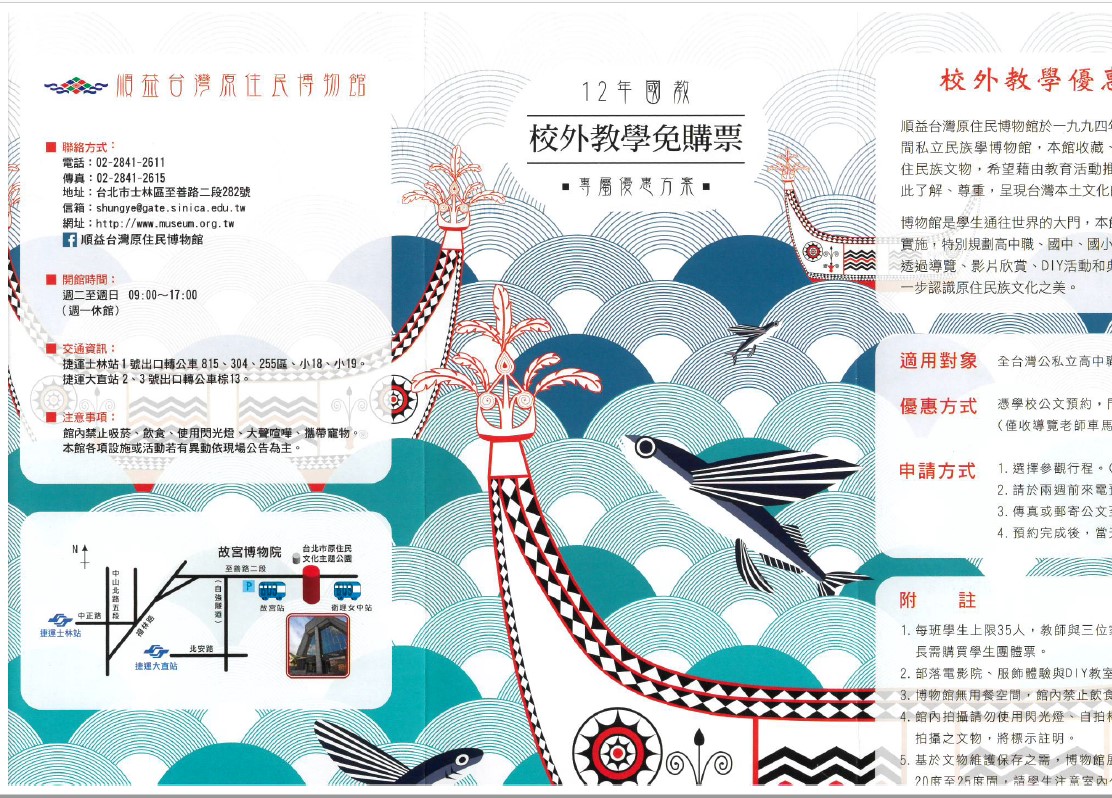 一、該館係本市立案登記之私立博物館,蒐藏、展示臺灣原住 民文物,為深化學生學習,規劃提供高中職及國民中小學 校外教學免購門票參觀專案。