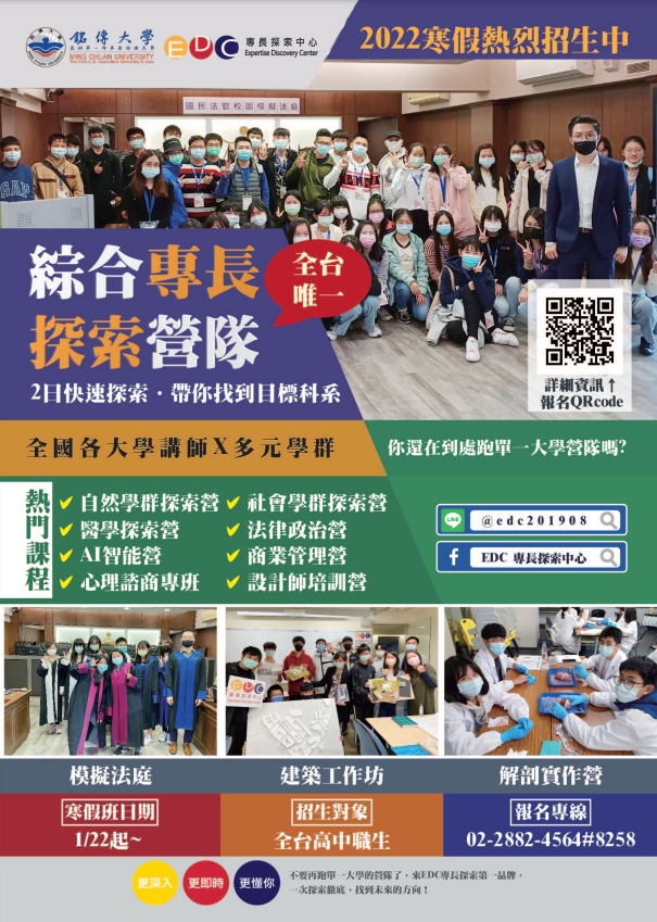 課程訊息請參閱銘傳大學產學暨推廣處專長探索課程網站 http://edc.extension1.mcu.edu.tw,課程簡章如附件。