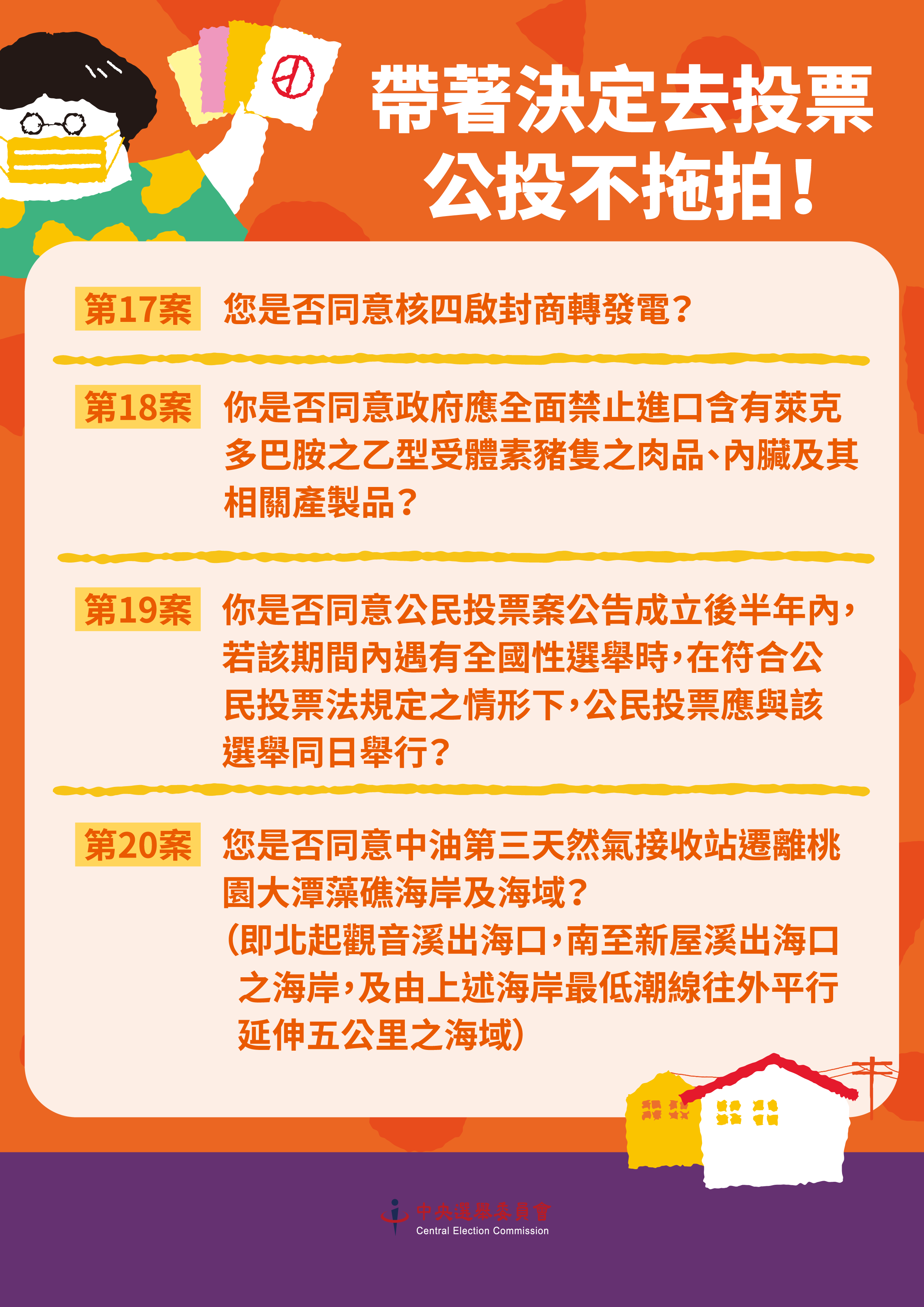 110年12月18日上午8時至下午4時舉行全國性公民投票,國民年滿18歲有投票權,凡於8月9日(含當日)以後遷出戶籍者,須返回原戶籍地投票所投票,請投票權人踴躍投票。