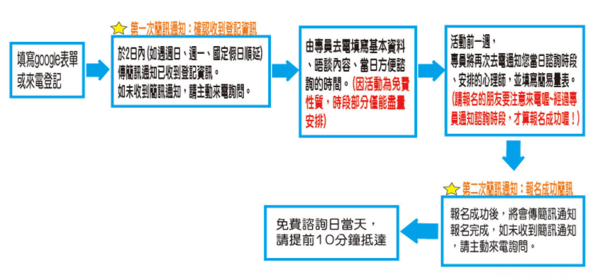 - 對象:中低收入戶者、不確定是否需要諮商者、想了解相關資源者