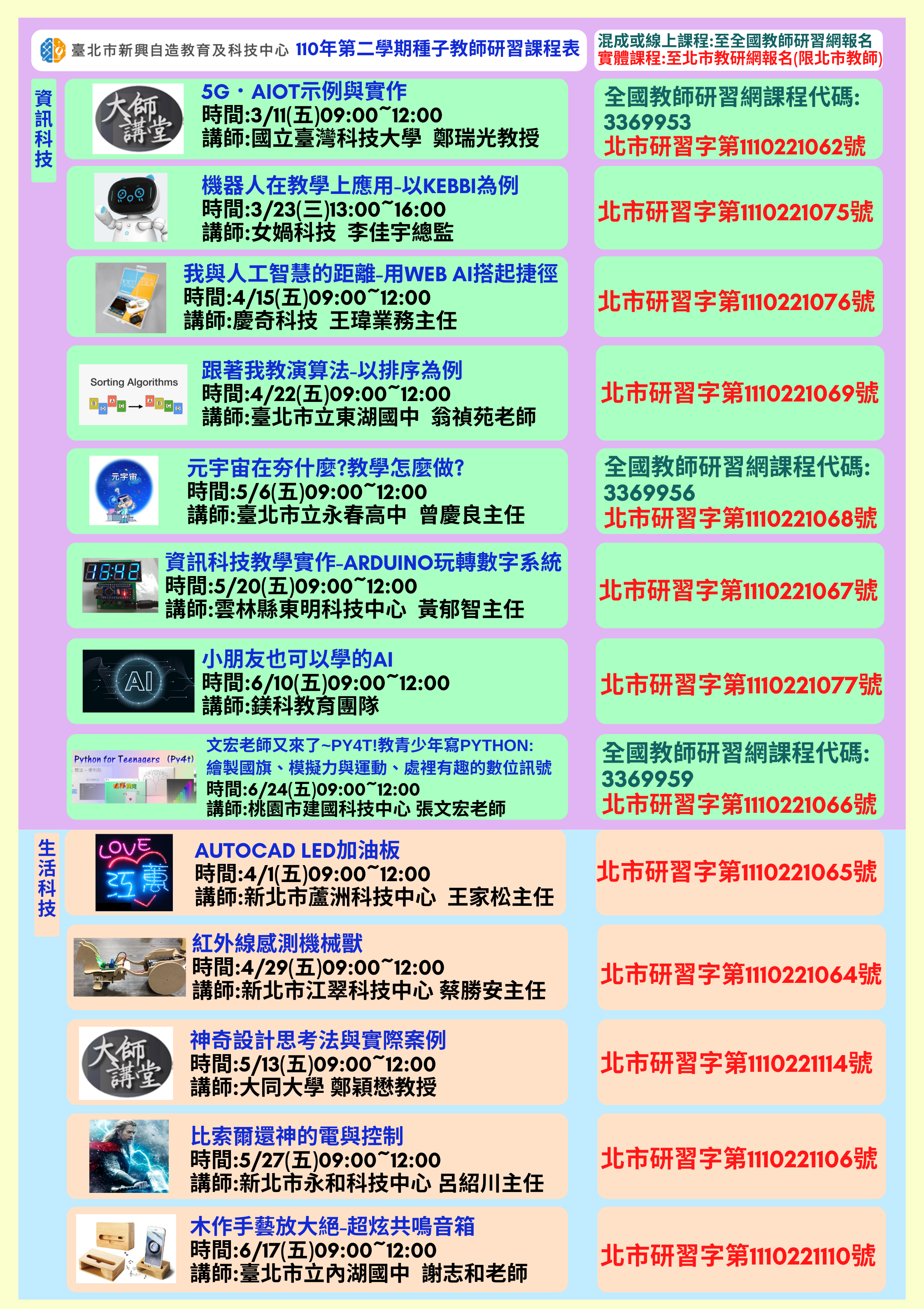 (四)「比索爾還神的電與控制」111年5月27日(五)上午9時至12時,共計3小時,講師:新北市永和科技中心 呂紹川主任