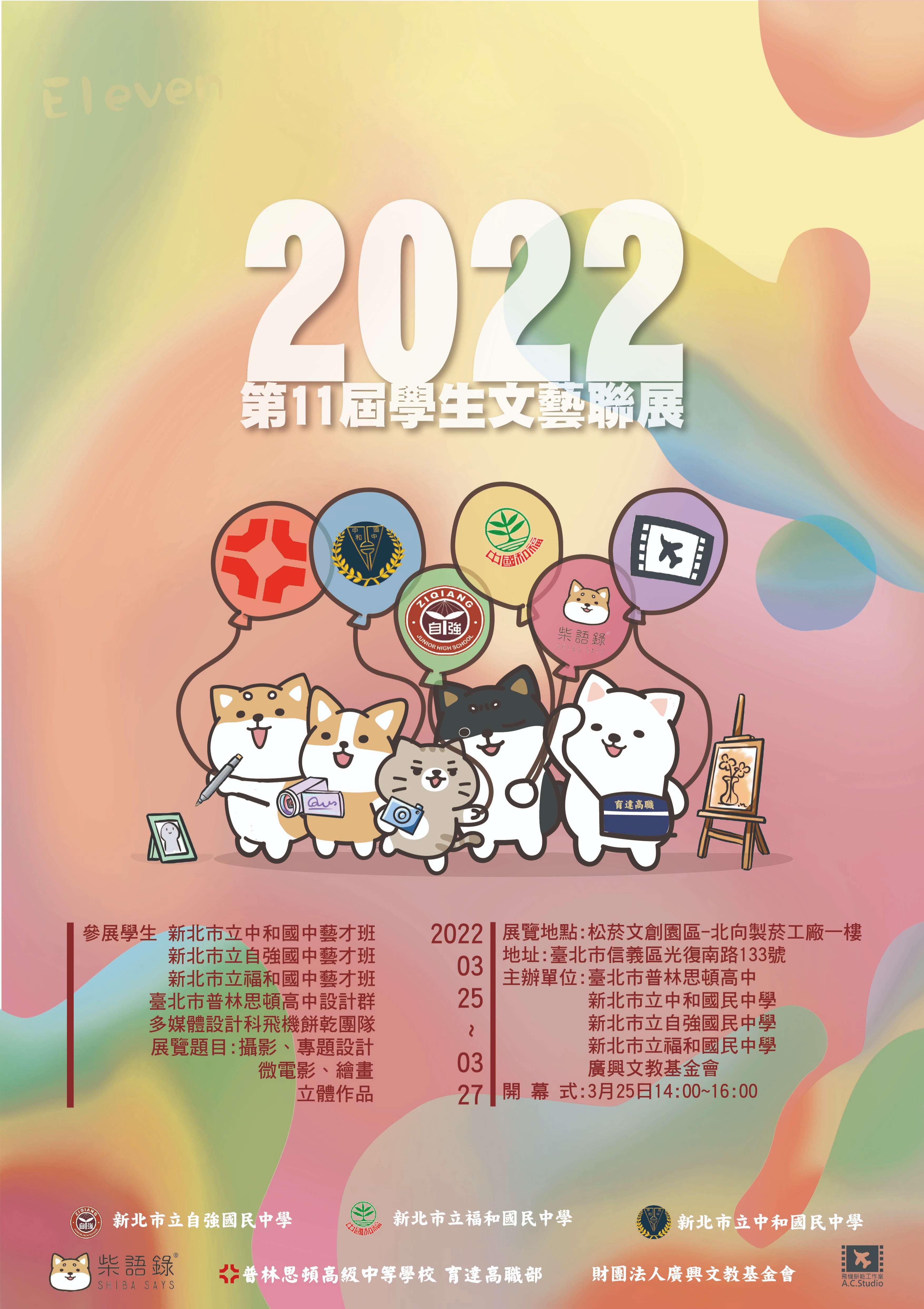 一、臺北市普林思頓高中多媒體設計科與新北市立中和國中、 新北市立自強國中、新北市立福和國中共同舉辦「第11屆 2022學生文藝聯展」,活動邀請柴語錄做為活動吉祥物, 惠請公告並鼓勵貴校同學前往參觀。