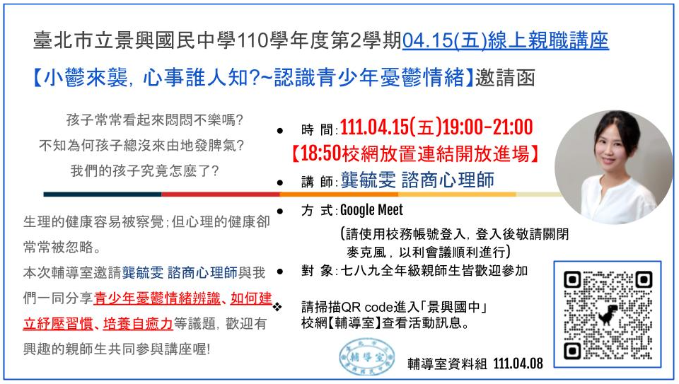 謝謝家長及老師們熱烈參與4/15(五)的線上親職講座,