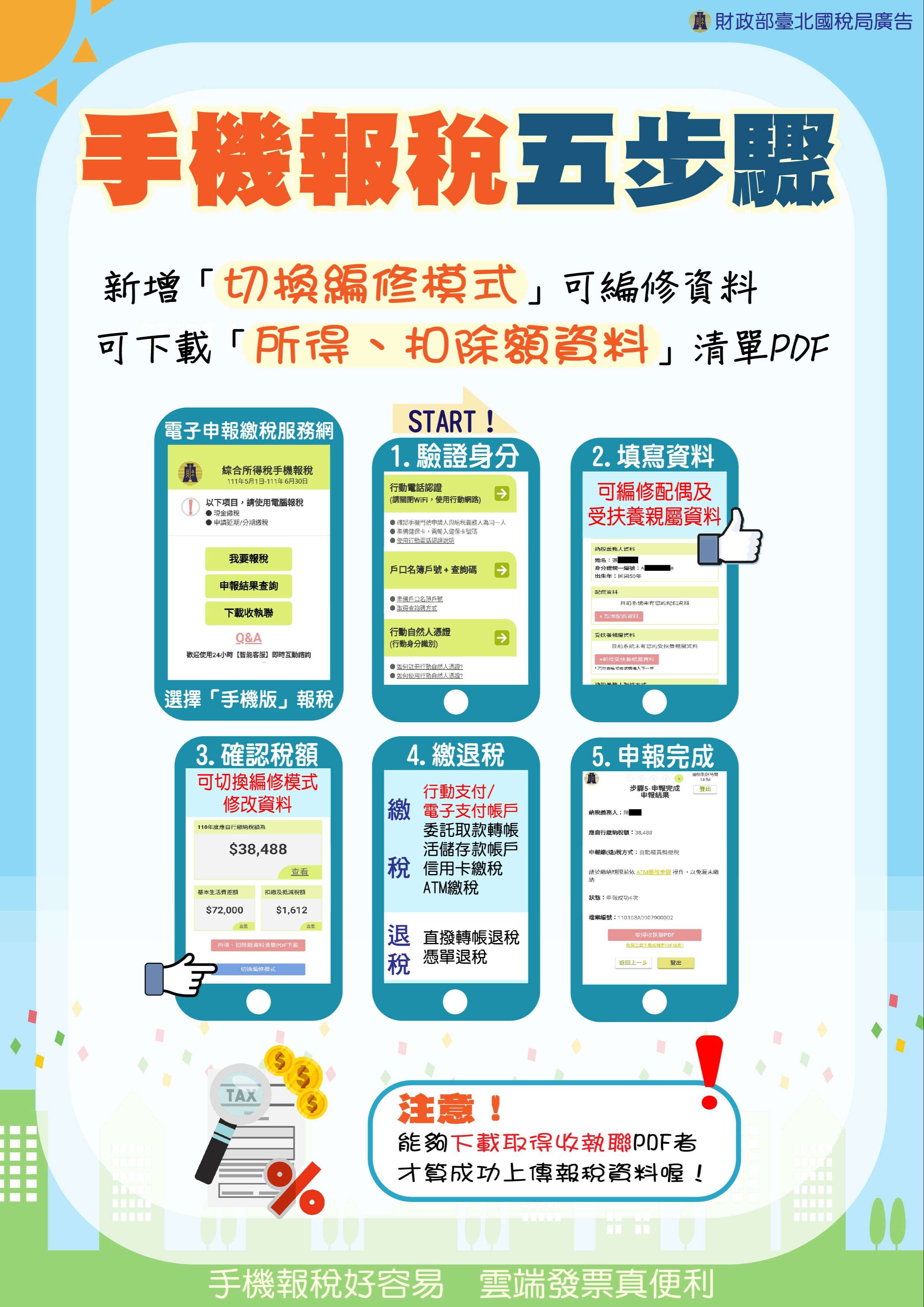 一、近來疫情嚴峻,至公共場所報稅恐增加染疫風險,協助推廣貴機關同仁及民眾多利用手機在家完成綜合所得稅結 算申報,安全又輕鬆。