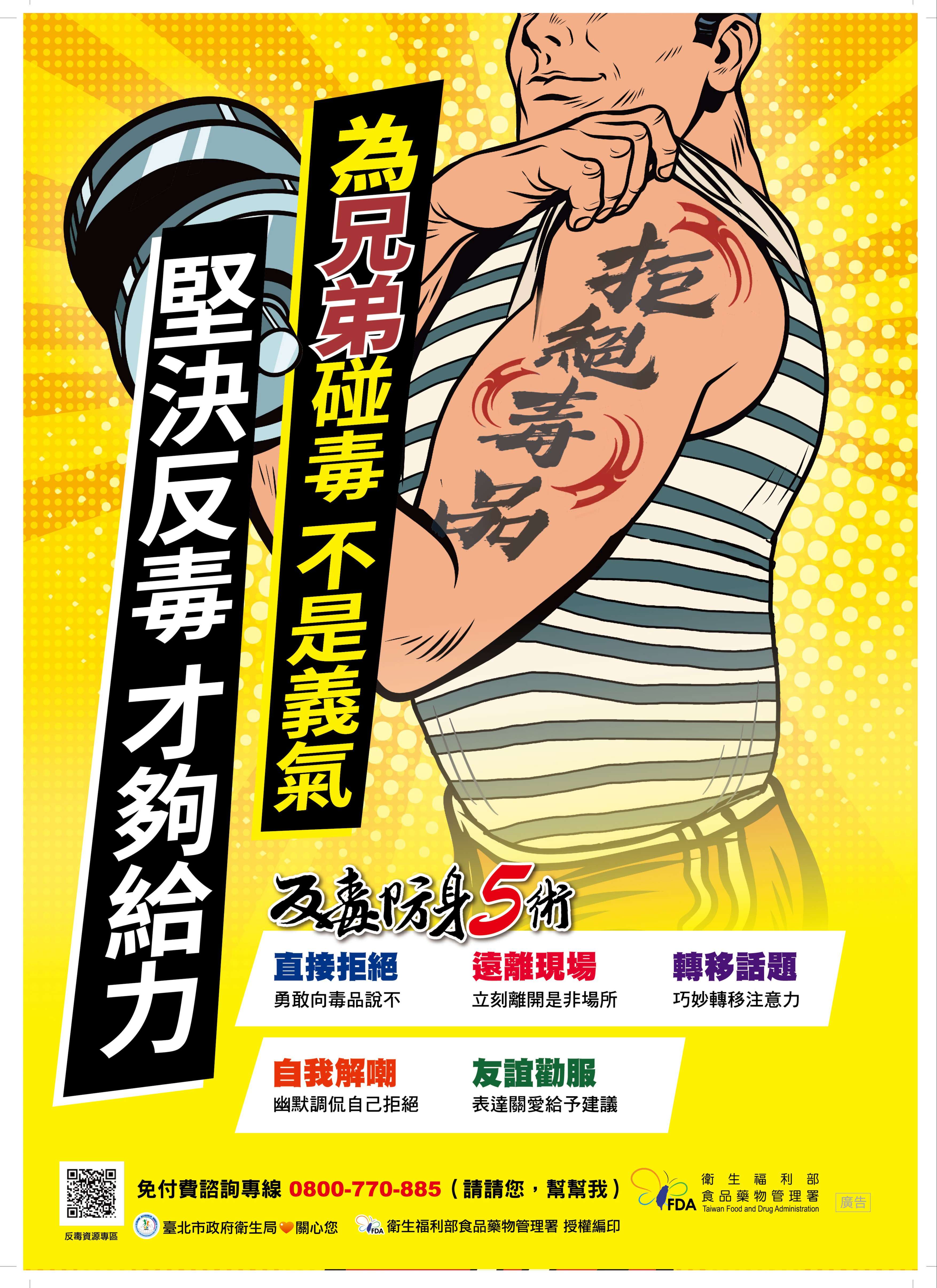 為配合衛生福利部「111年暑期保護青少年─青春專案」進行淨化妨害青少年成長環境,確保暑期青少年安全活動空間,維護其身心健全發展,請同學:藥品真偽辨分明,誇張廣告勿輕信。一日吸毒苦哈哈,終身拒毒笑哈哈。毒品引進門,全家近鬼門;珍惜生命,拒絕毒害。