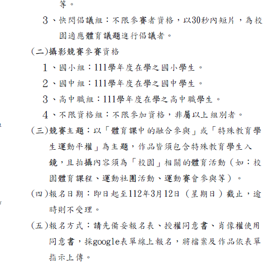 2、攝影競賽報名表單:https://forms.gle/t9jkn8dbxKQ45THs8