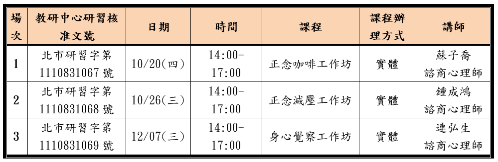 為實體課程,研習地點:臺北市立新興國中活動中心3樓教研中心外辦班教室