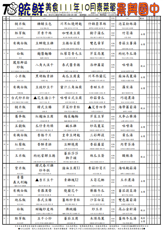 11110景興國中素食菜單