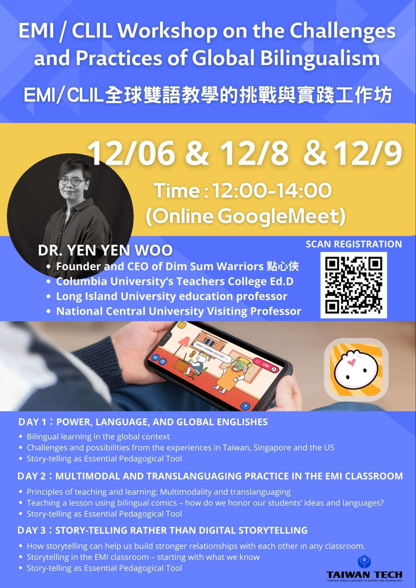 二、旨揭工作坊分別辦理12/6、12/8及12/9場次,可核發全國