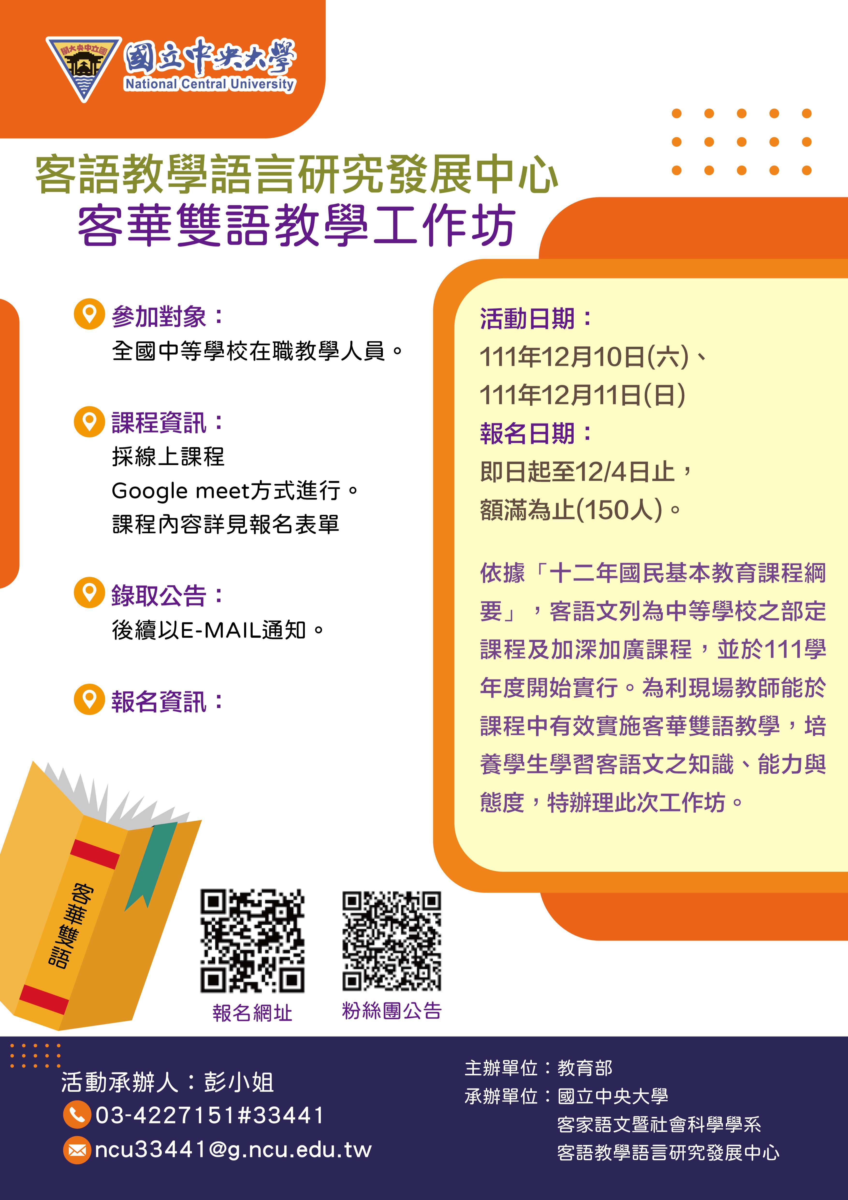 三、倘對本活動有相關疑問,請逕洽國立中央大學彭小姐,電