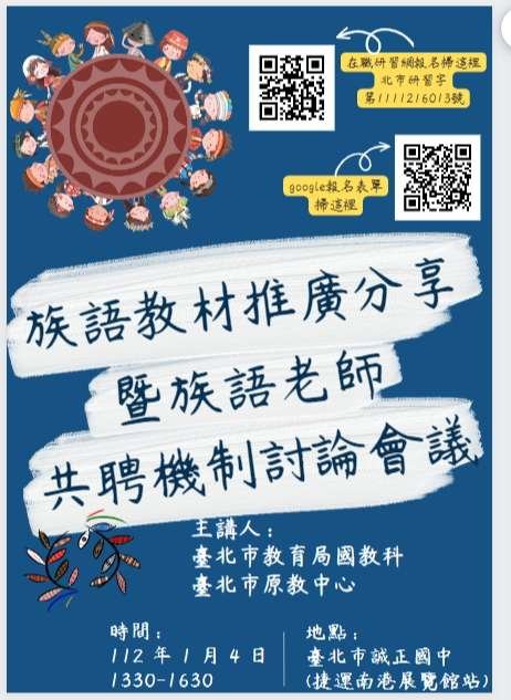 (三)參加對象:本市專職族語老師、原住民族教支人員、對