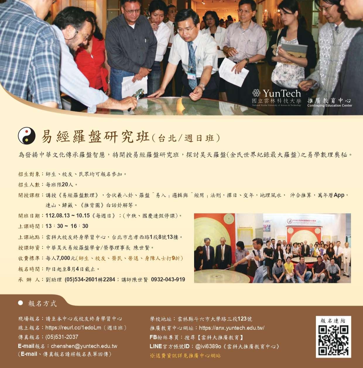 二、上課地點:雲科大校友終身學習中心,台北市忠孝西路1段
