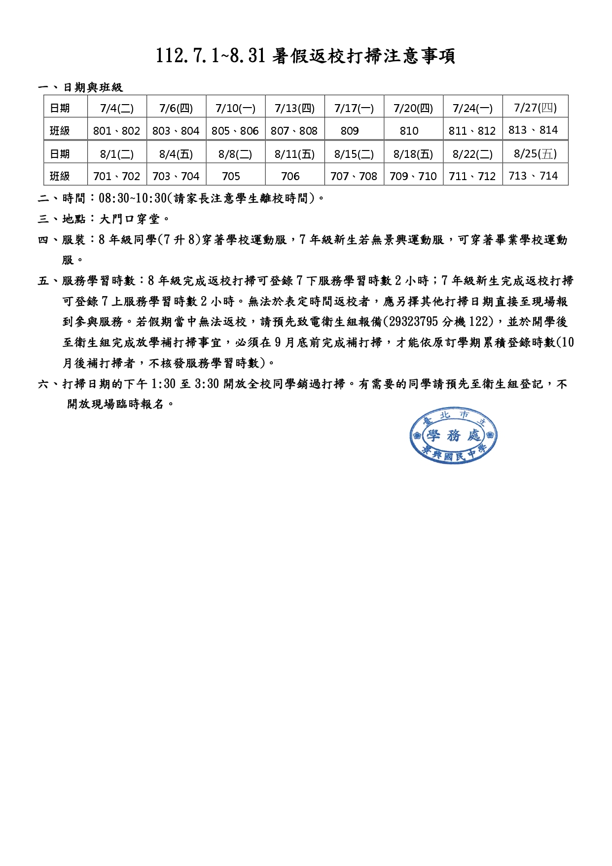 應另擇其他打掃日期直接至現場報到參與服務。