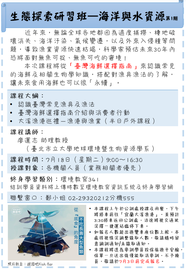 (二)課程地點:公訓處及宜蘭縣大溪漁港。