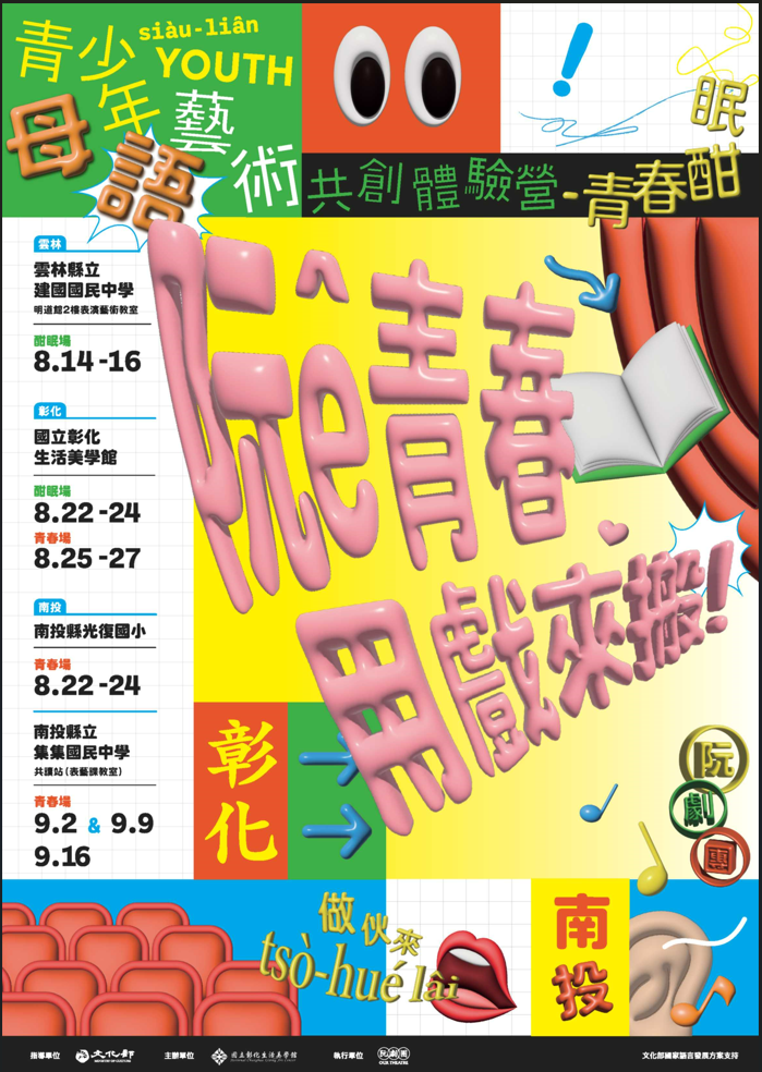 二、本活動以國、高中青少年為對象,由表演藝術團隊帶領青 少年進行藝文活動體驗,鼓勵青少年參與藝文活動、體驗 表演藝術,且能以不同的形式了解台語,期盼帶給青少年 不同的文化內容以及語言學習,並推動戲劇教育進入青少 年的生活。