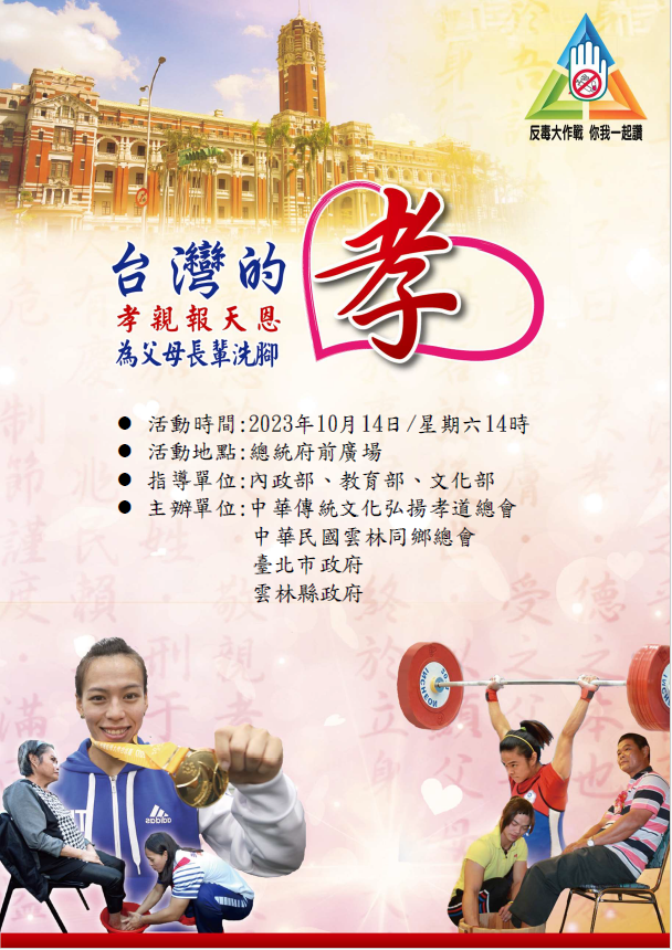 (二)活動主旨:宣傳孝道並付諸行動,反毒相關資訊周知。