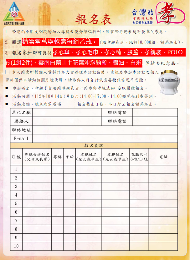 (四)聯繫窗口:請逕洽孝道總會報名,電話:(02) 25851322、傳真:(02)25851323。