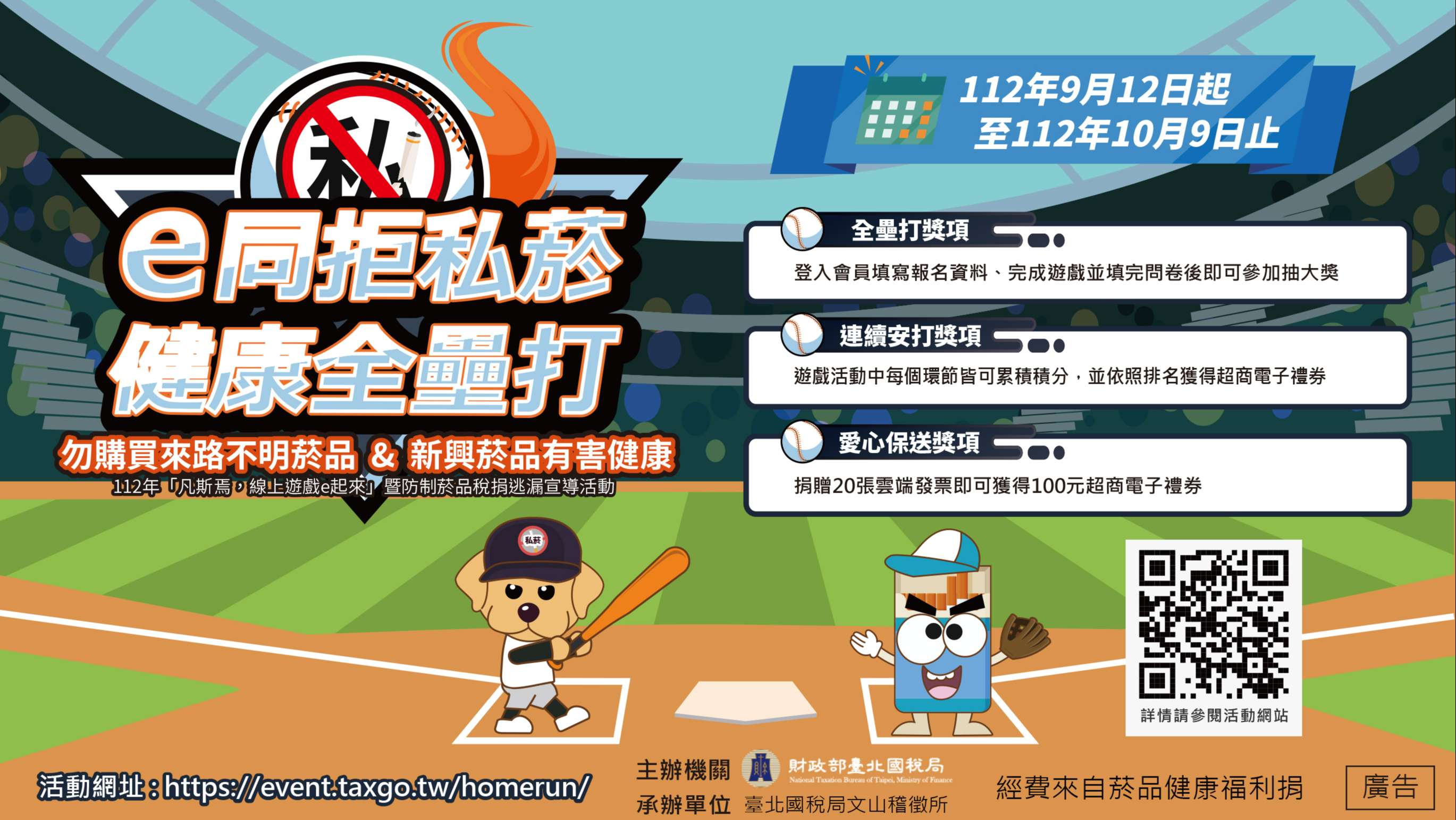 二、旨揭活動時間自112年9月12日起至112年10月9日24時止,活動網址:https://event.taxgo.tw/homerun/。