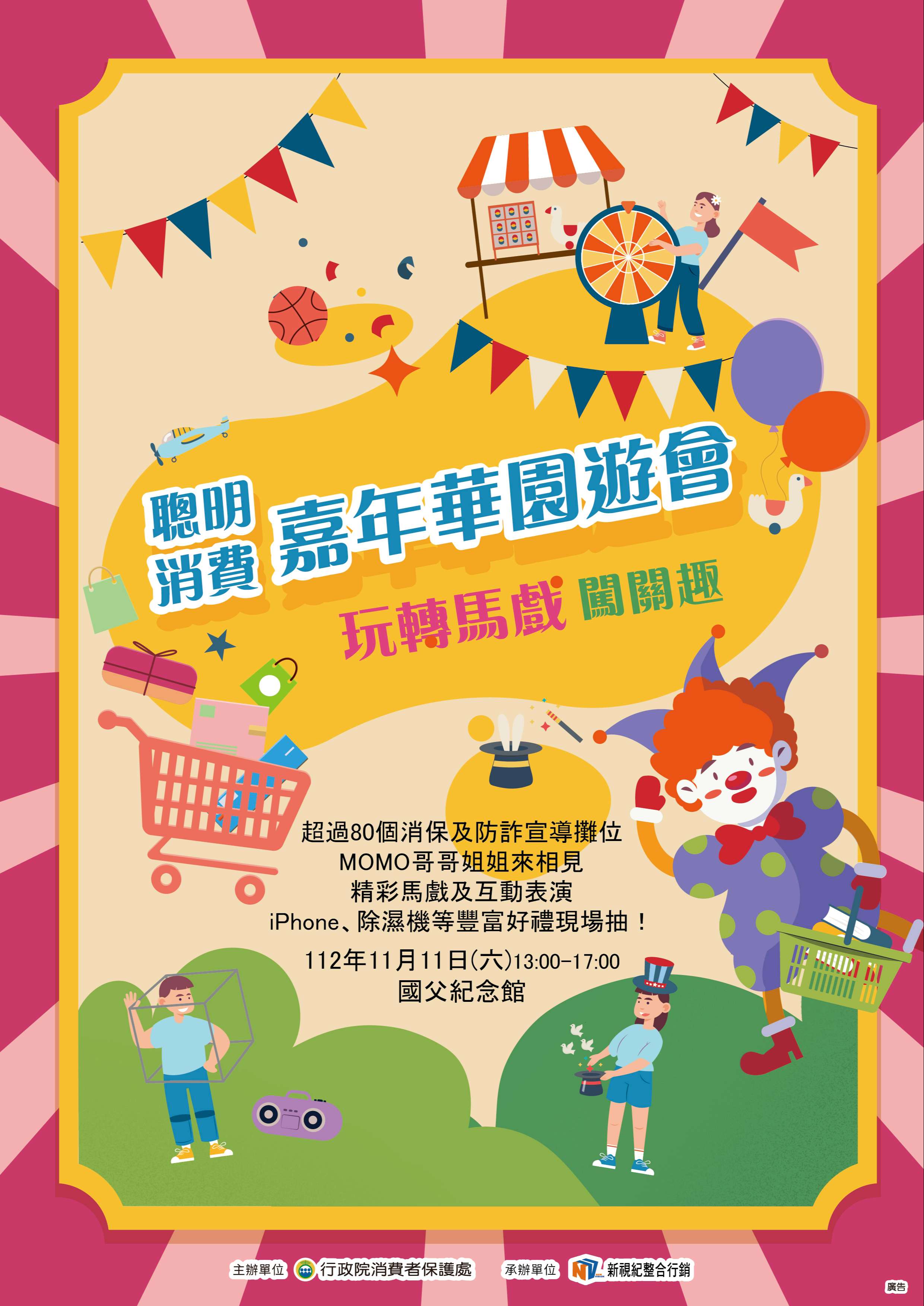 二、該處為強化消費者自我保護知能,訂於112年11月11日(星期六)下午1時至5時於國父紀念館舉辦旨揭活動,除設有逾80個攤位供學習體驗與闖關抽獎外,並安排魔術、小丑表演與電視兒童臺哥哥姐姐唱跳、部會上臺秀等舞臺表演,透過寓教於樂方式,傳達重要消保與防詐觀念。