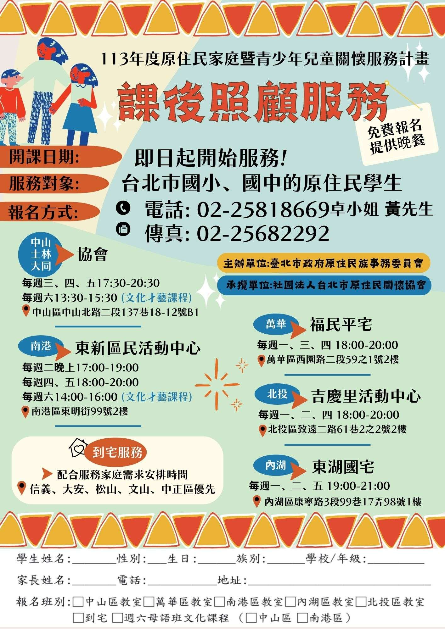 社團法人台北市原住民關懷協會辨理「113年度原住民家庭暨青少年兒童關懷服務計畫」