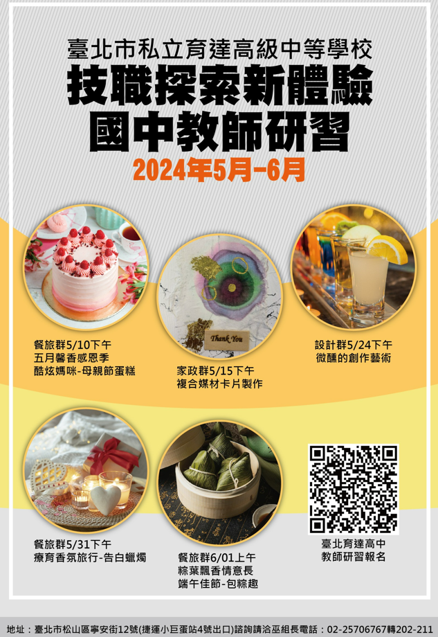 二、活動地點:臺北育達高中 (臺北市松山區寧安街12號、捷運小巨蛋4號出口)。