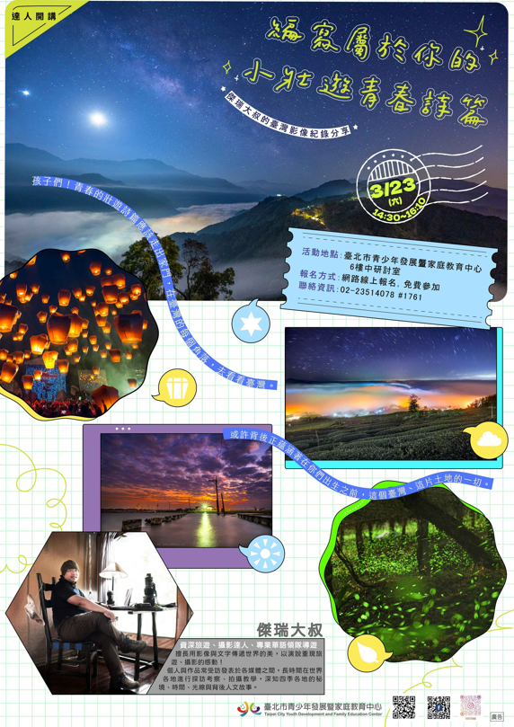 (六)此場為壯遊達人講座,凡申請113年臺北市青少年壯遊臺灣補助計畫團隊參與講座附照片者得加分。