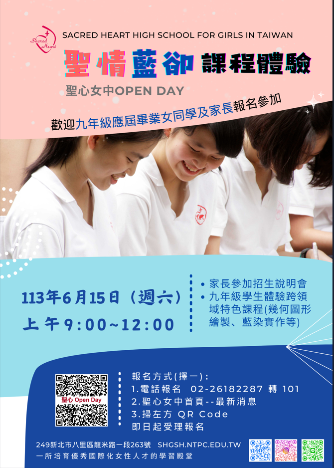 (二) 或至聖心女中首頁www.shgsh.ntpc.edu.tw—最新消息報名。