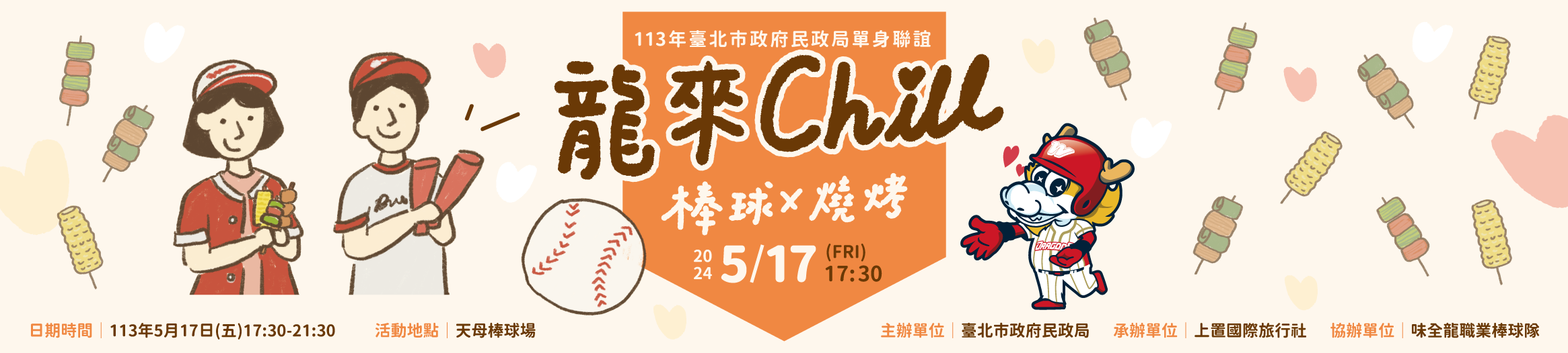 「龍來chill」棒球燒烤主題聯誼,訂於113年5月17日下午5點30分