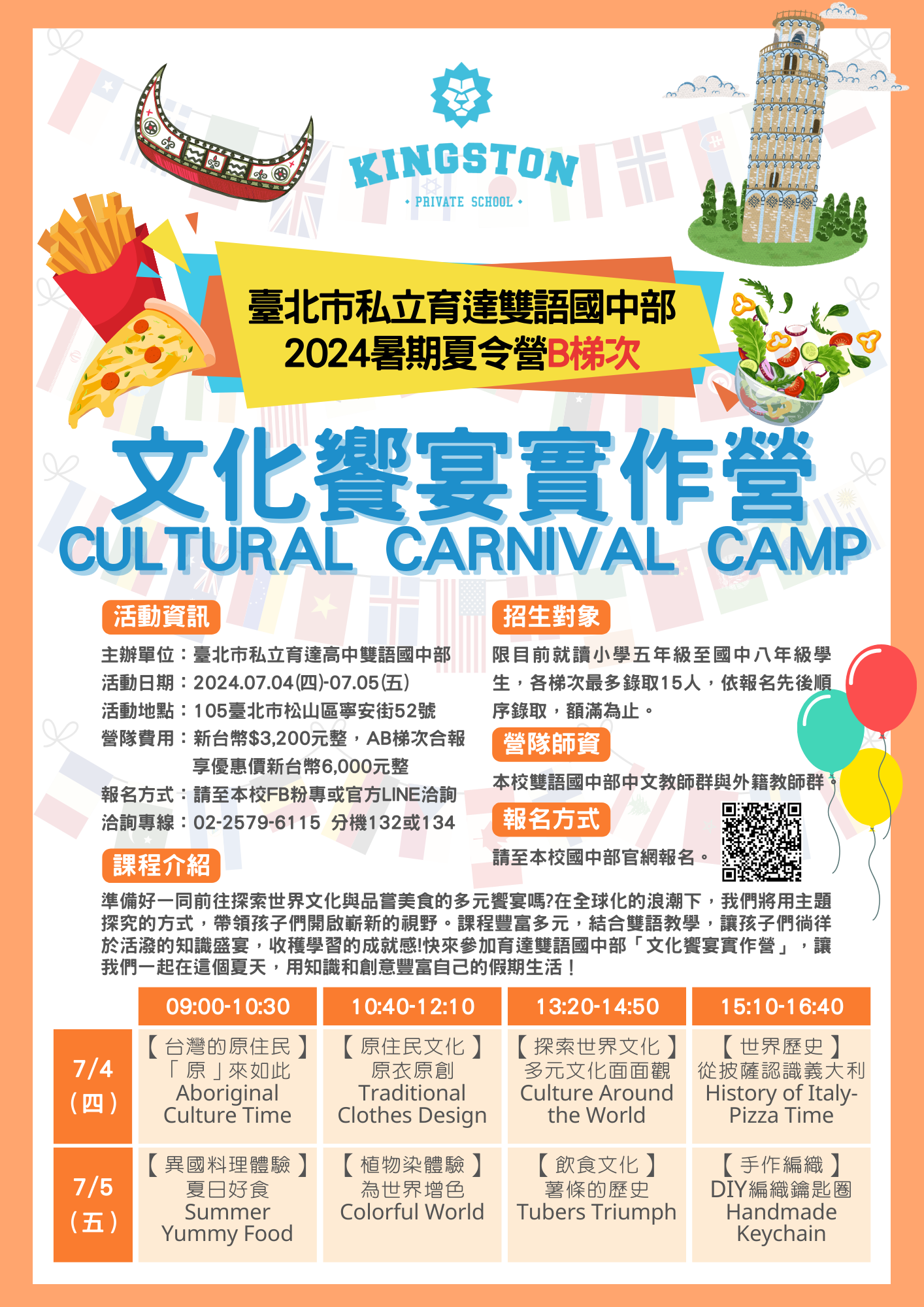 (二)文化饗宴實作營:113年7月04日至7月05日,共2天,每天9:00―16:40。