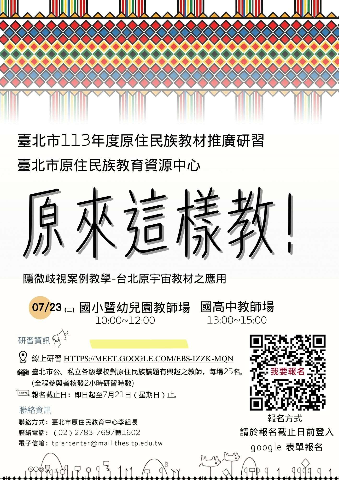 2、國高中教師下午場:113年7月23日(星期二)13: