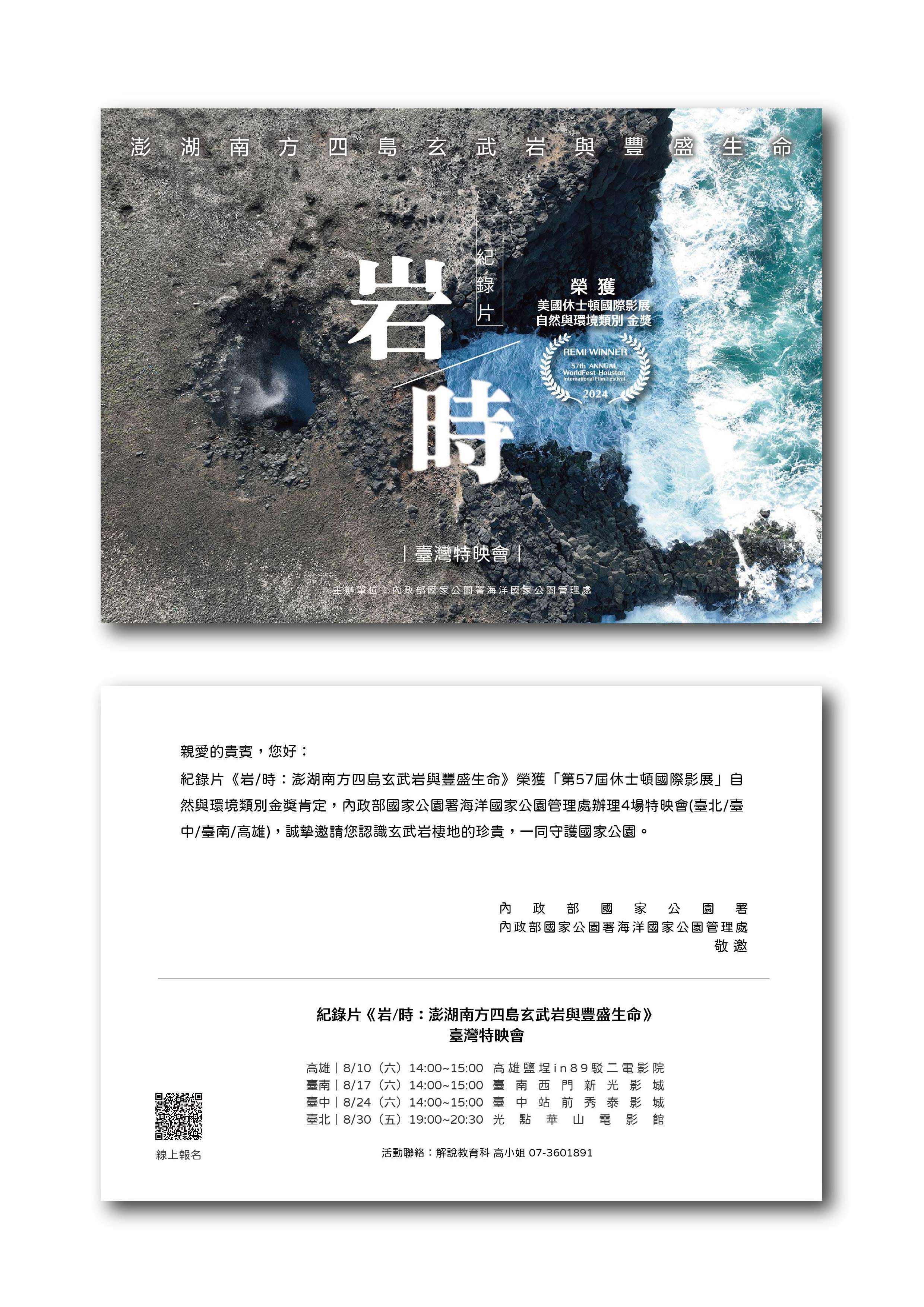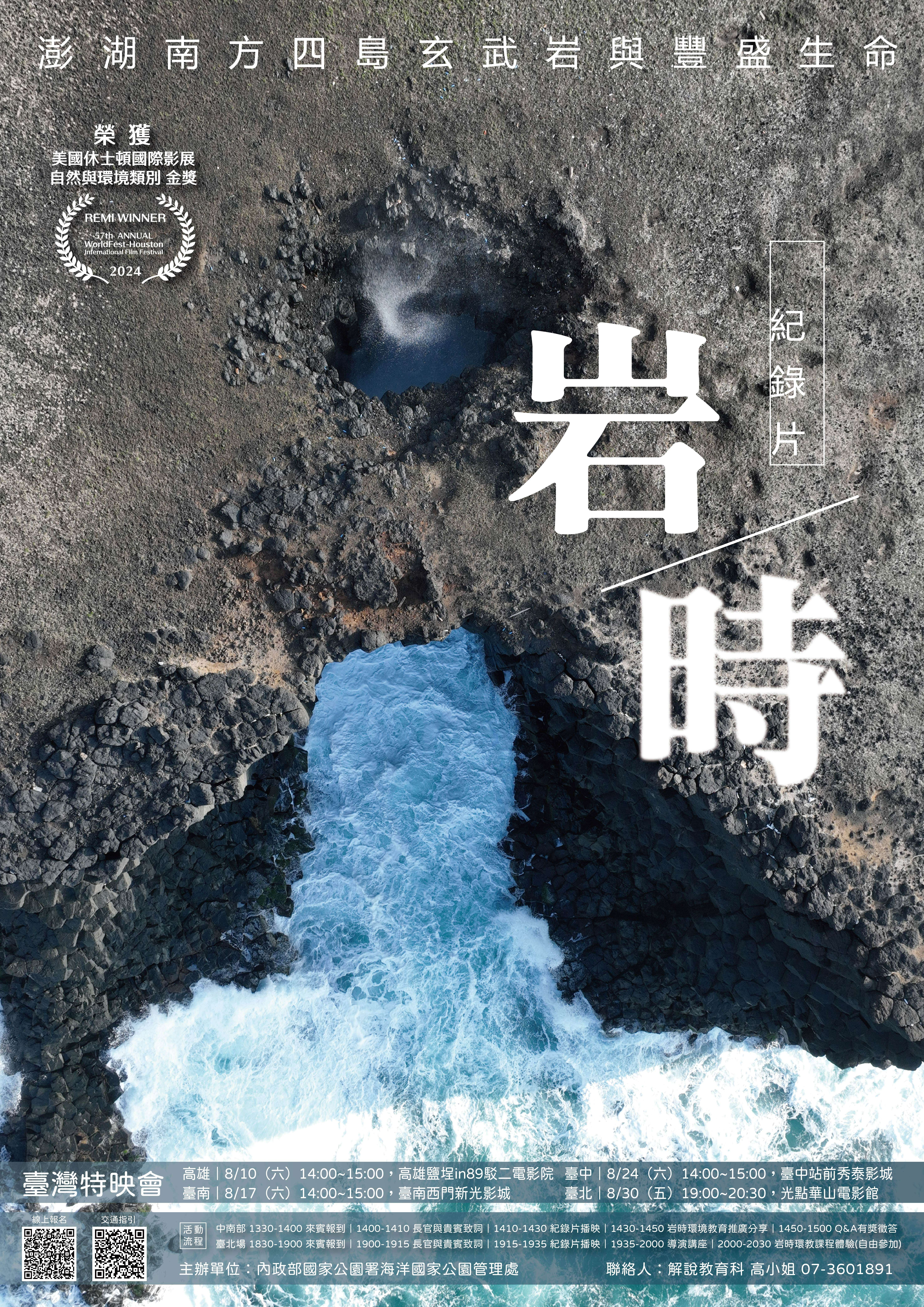 二、旨揭紀錄片以影像呈現澎湖南方四島國家公園玄武岩地 質、生態、人文及棲地保育等多元內涵,並榮獲「第57屆 休士頓國際影展」(57thWorldFest-Houston)自然與環境 類別(Nature&Wildlife,Film&VideoPrdns)金獎(Gold) 肯定。