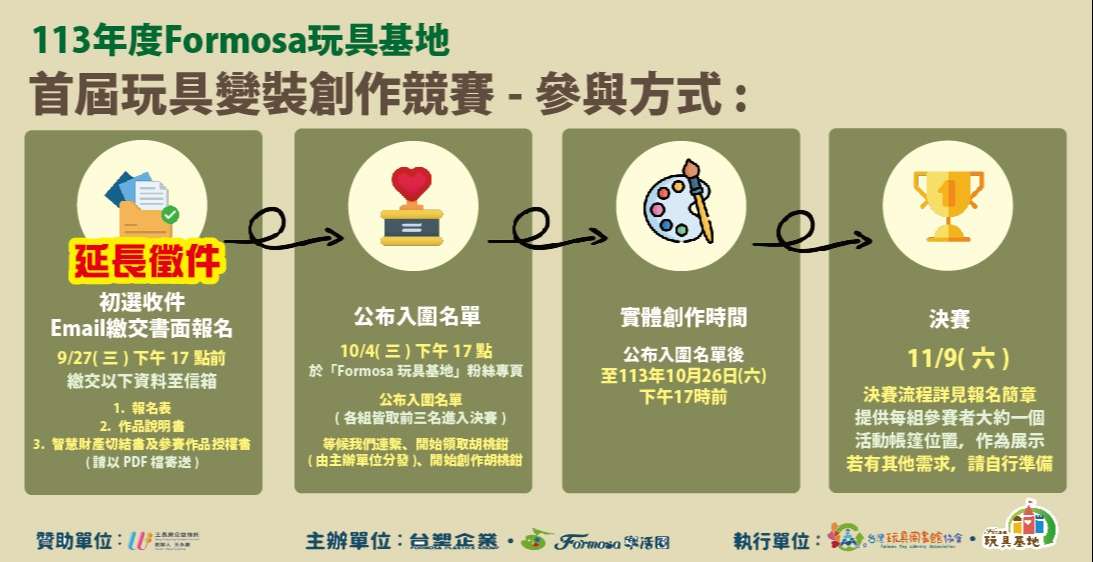 六、後續活動相關資訊將公告於Formosa玩具基地粉絲專頁:https://reurl.cc/1b2Z59。