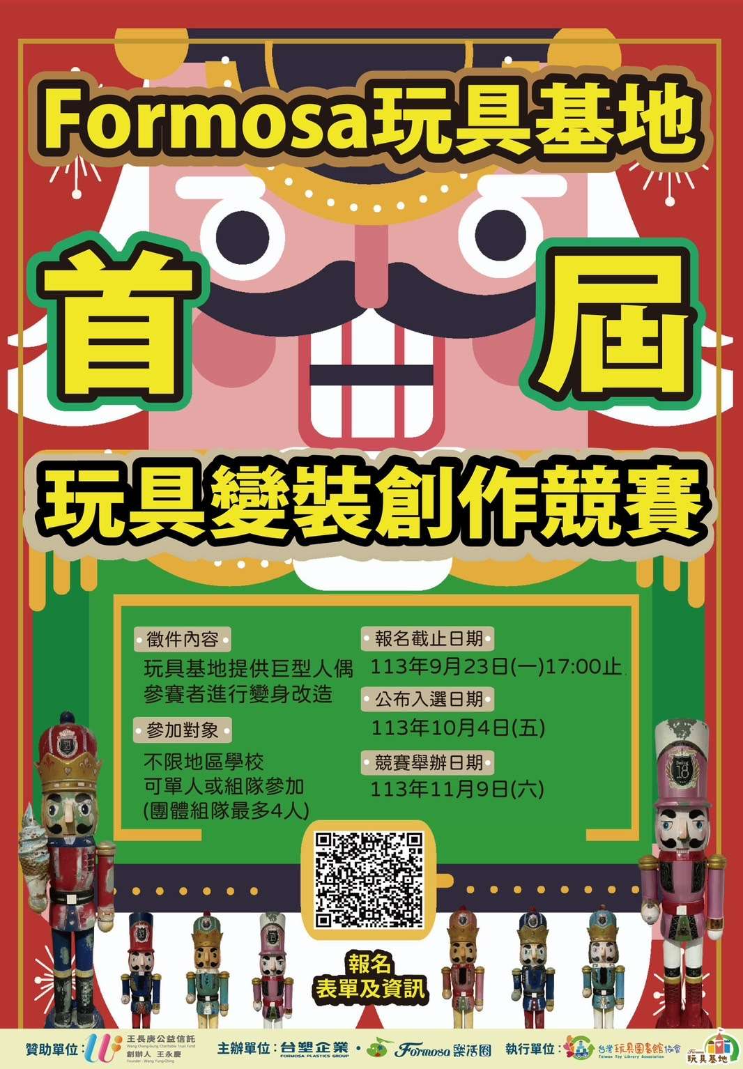 一、本會與台塑企業王長庚公益信託、Formosa樂活圈合作辦理《Formosa玩具基地首屆玩具變裝創作競賽》,誠摯邀請貴校師生參與競賽活動。