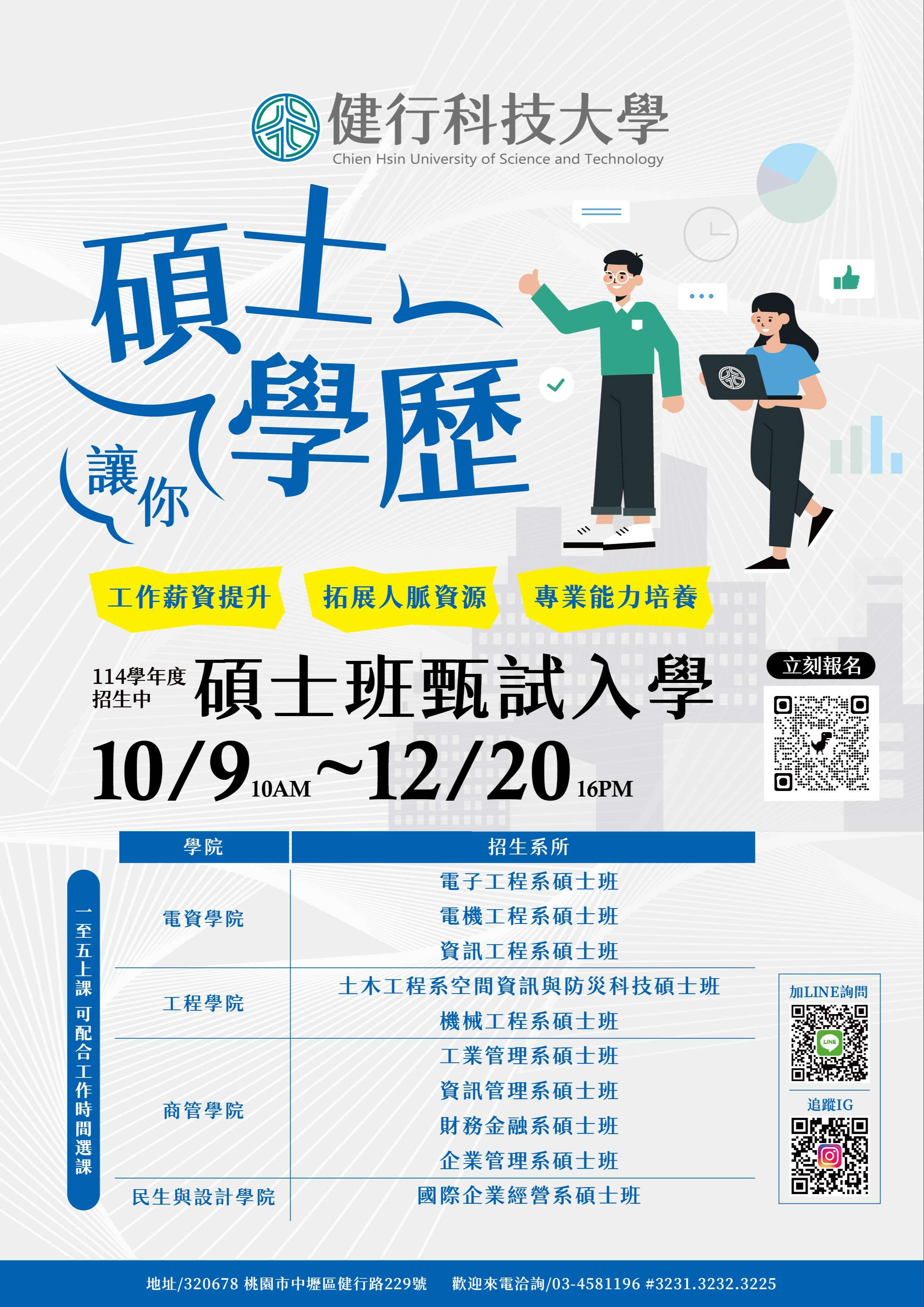 一、本校114學年度碩士班甄試入學,詳細報名資訊如下: