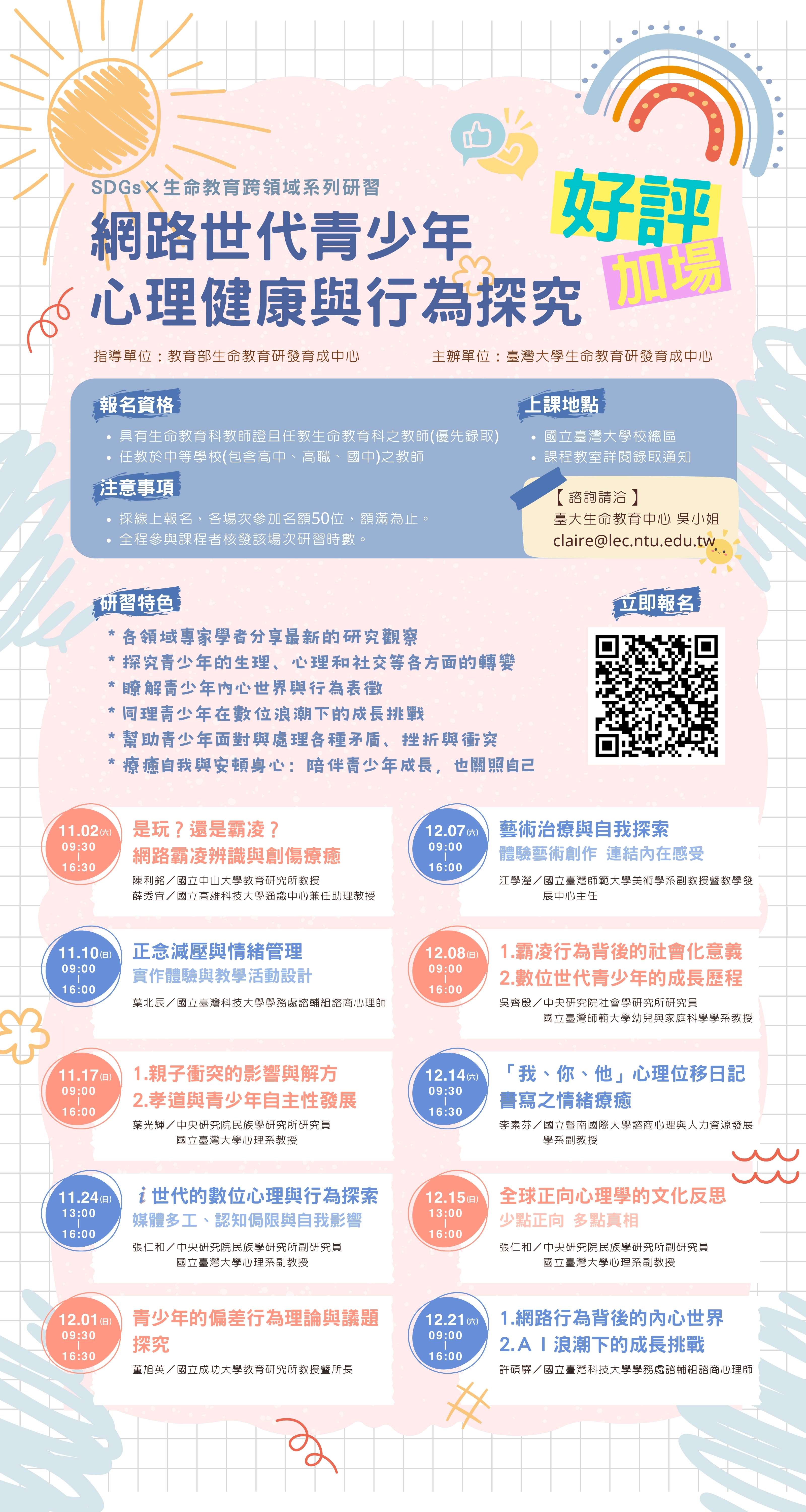 12月21日(星期六):網路行為背後的內心世界、AI 浪潮下的成長挑戰。