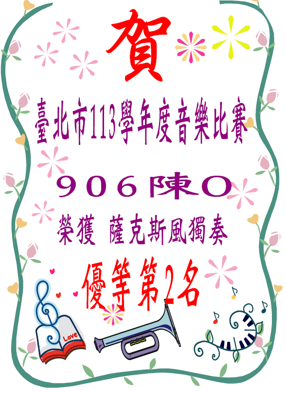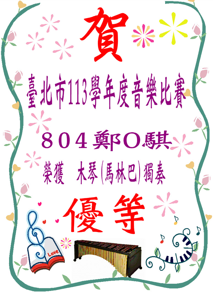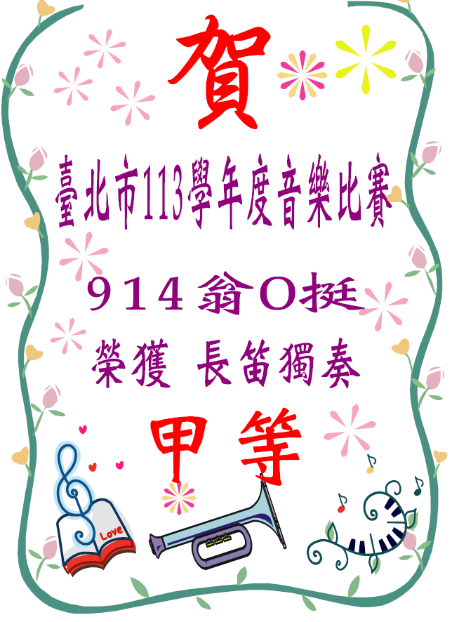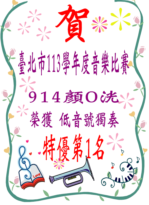 914顏O洸將代表臺北市參加113學年度全國學生音樂比賽!!!