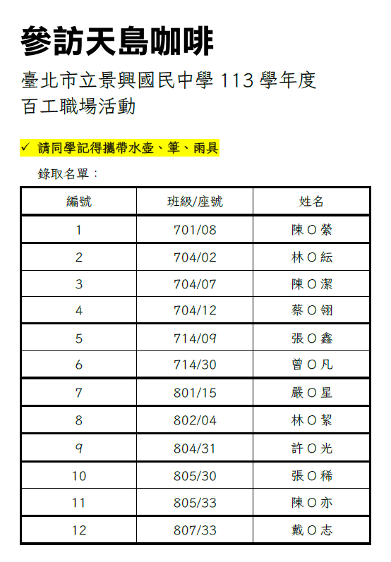 恭喜同學錄取,將再發送行前通知至班上給各位同學。