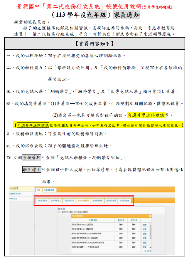 重要資料,請九年級家長們參考附件,並截圖於下。