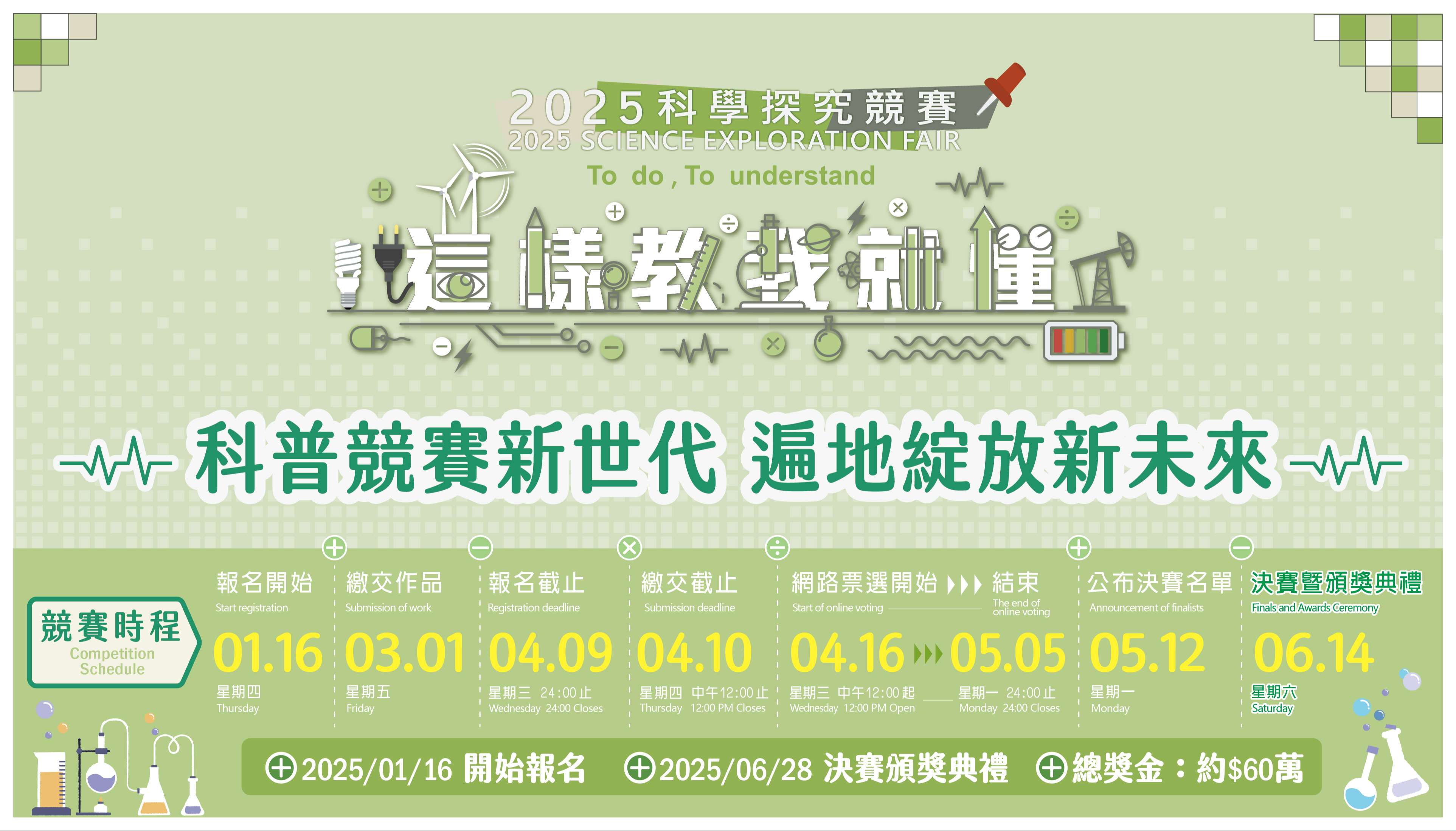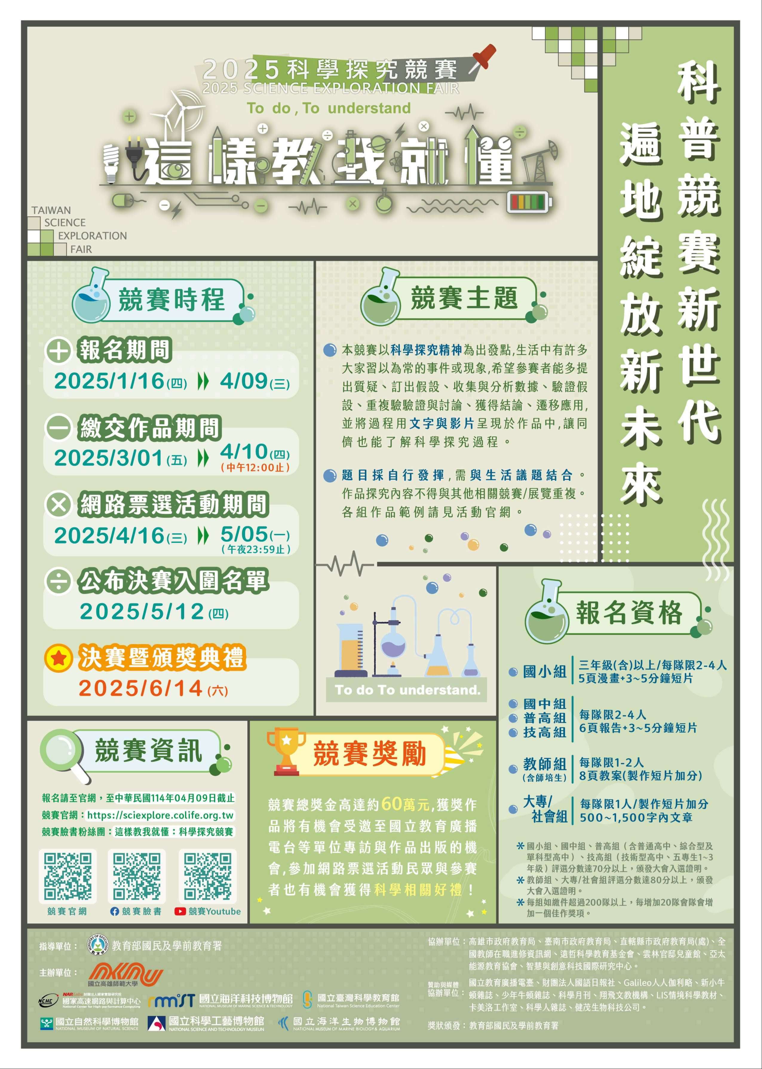 二、檢附競賽文宣海報、時程表及競賽演化歷史圖各1份,詳細說明請參考官網,網址:http://sciexplore.colife.org.tw/。