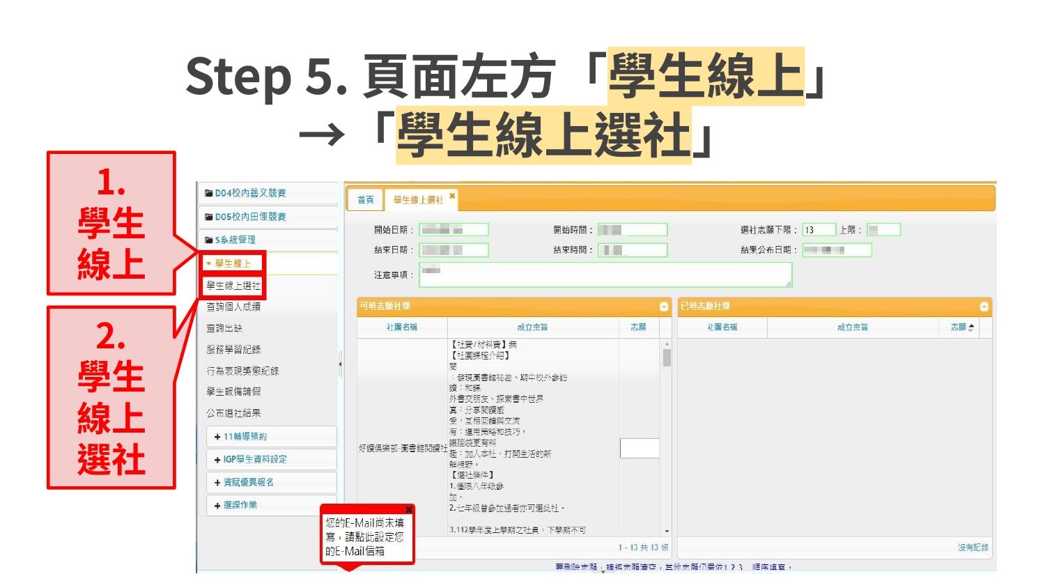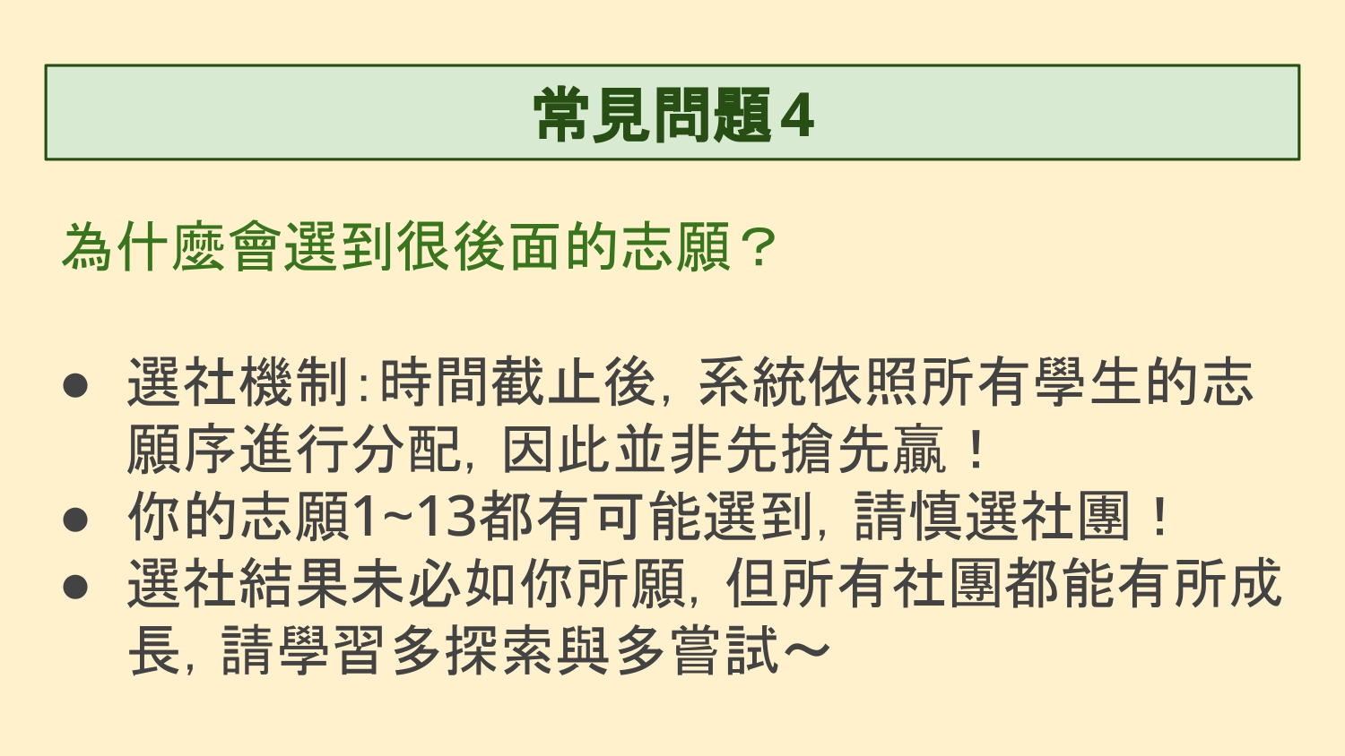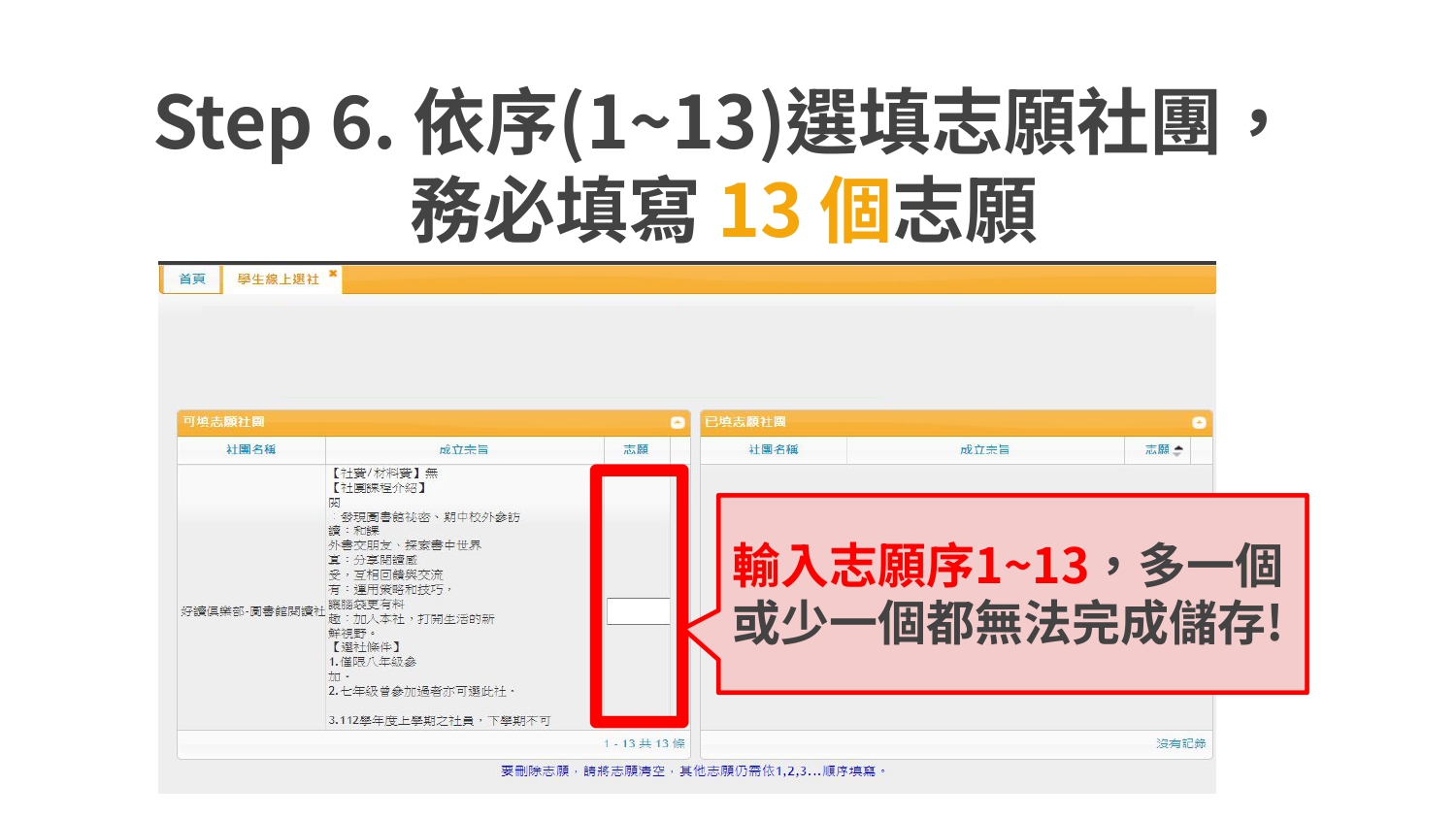 ⚠️逾期未選社者,系統將依尚有名額的社團直接安排,不得異議⚠️