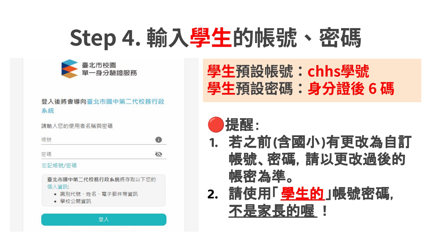 ★選社期間如有單一身分驗證帳密問題,請務必聯繫學務處訓育組(分機121)