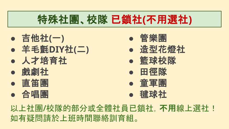 ★選社結果以2月13日(週四)訓育組紙本公告為主。