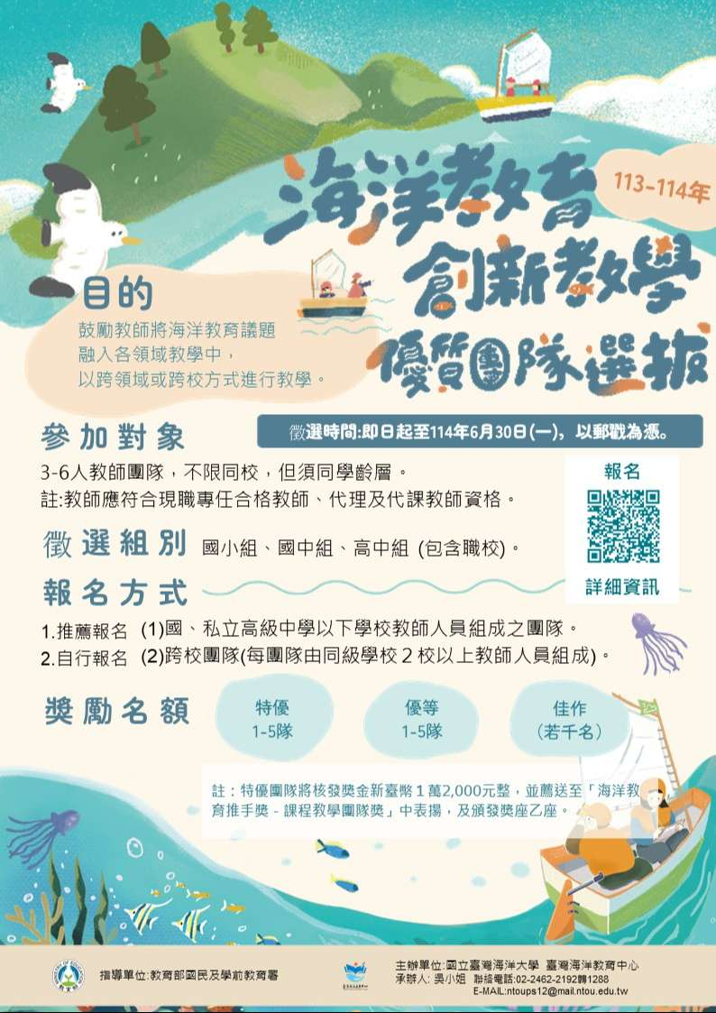 一、依據國立臺灣海洋大學114年2月7日海洋教育字第
