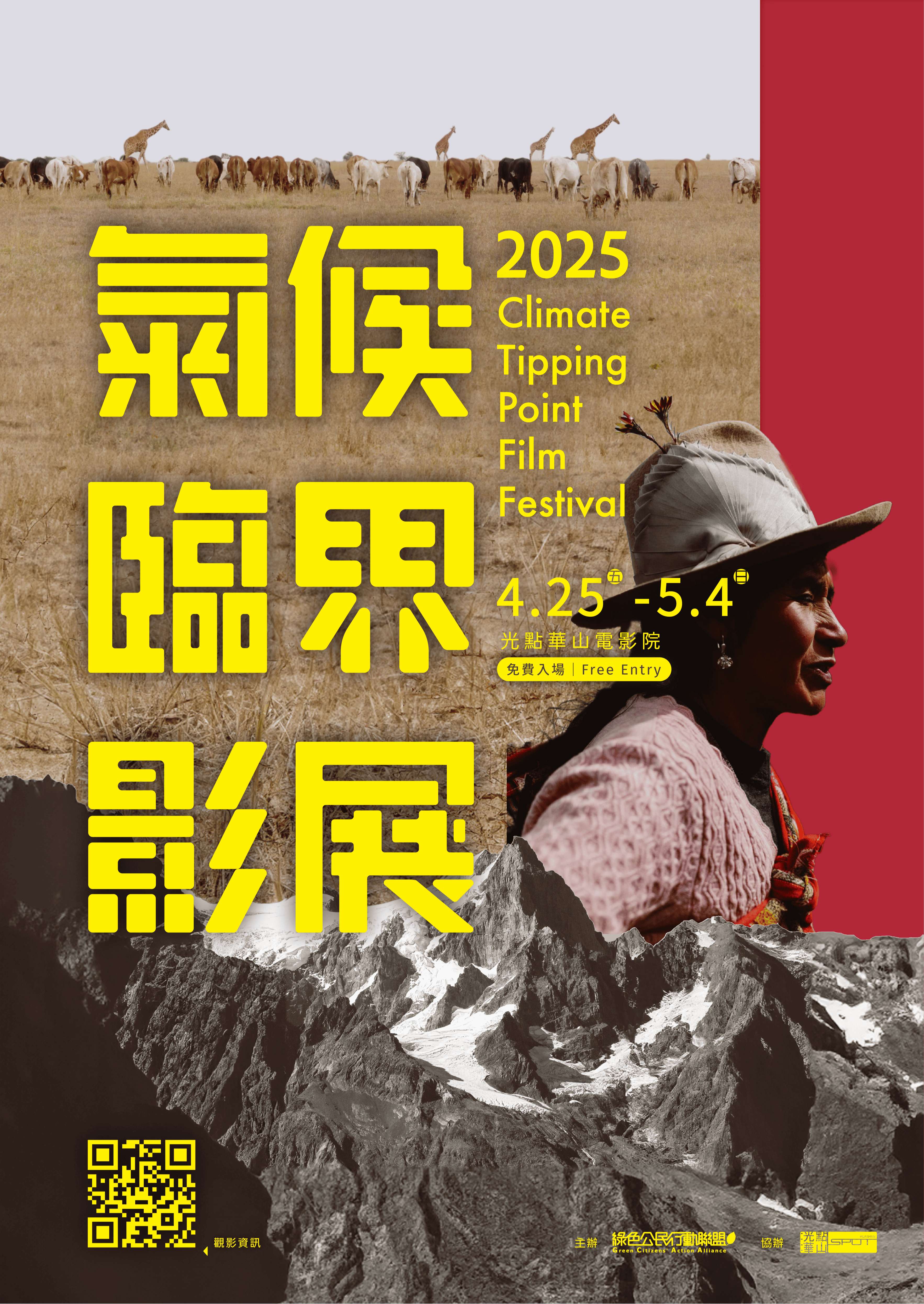 一、由綠色公民行動聯盟主辦之「2025氣候臨界影展」 (Climate Tipping Point Film Festival),訂於114年4 月25日(五)至5月4日(日)於臺北市光點華山電影館舉 行。