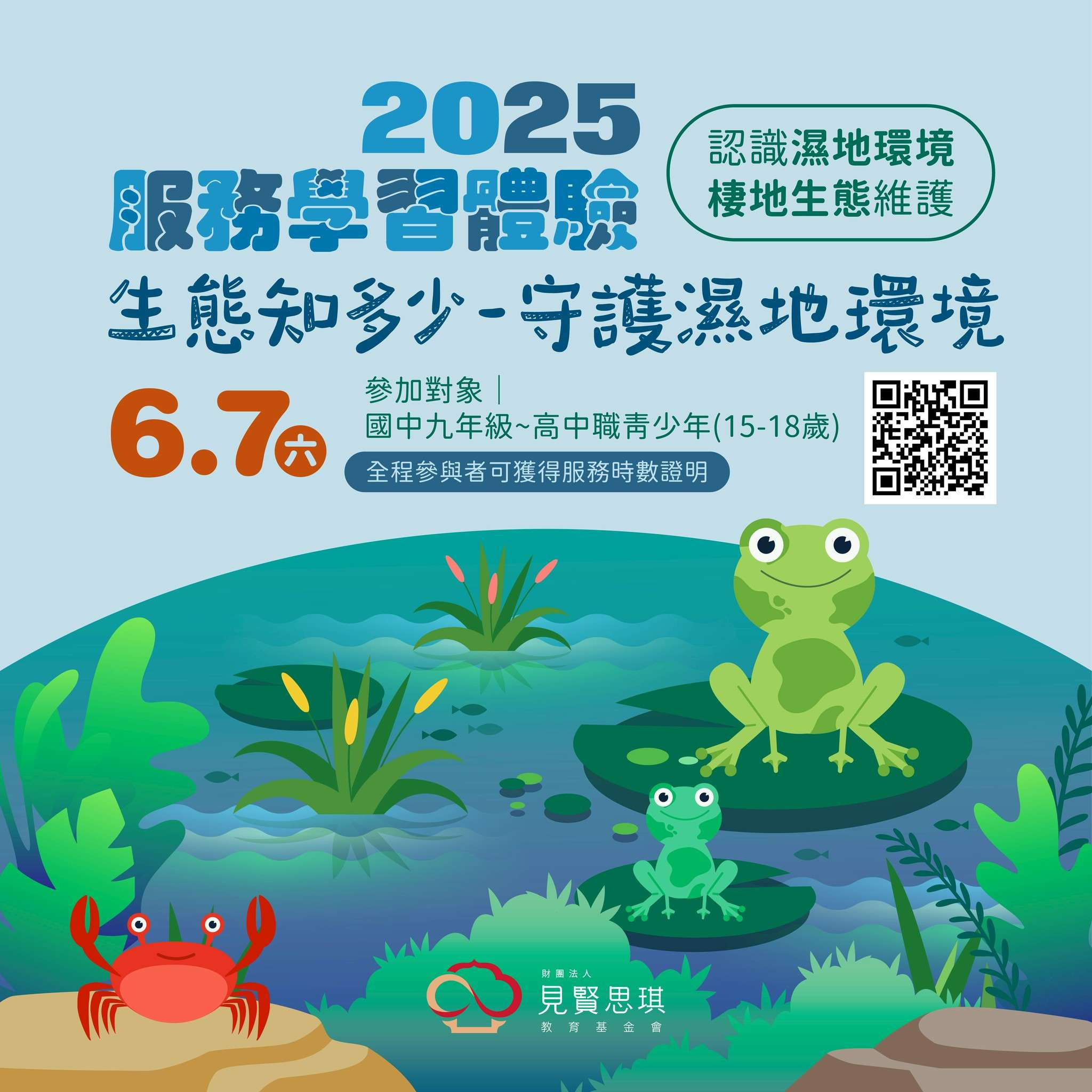 一、本會辦理「2025服務學習-生態知多少」服務學習活動,透 過做中學提供社會參與機會,增進青少年對環境議題的關 心,豐富其學習視野,歡迎有服務熱忱的青少年踴躍參 與。